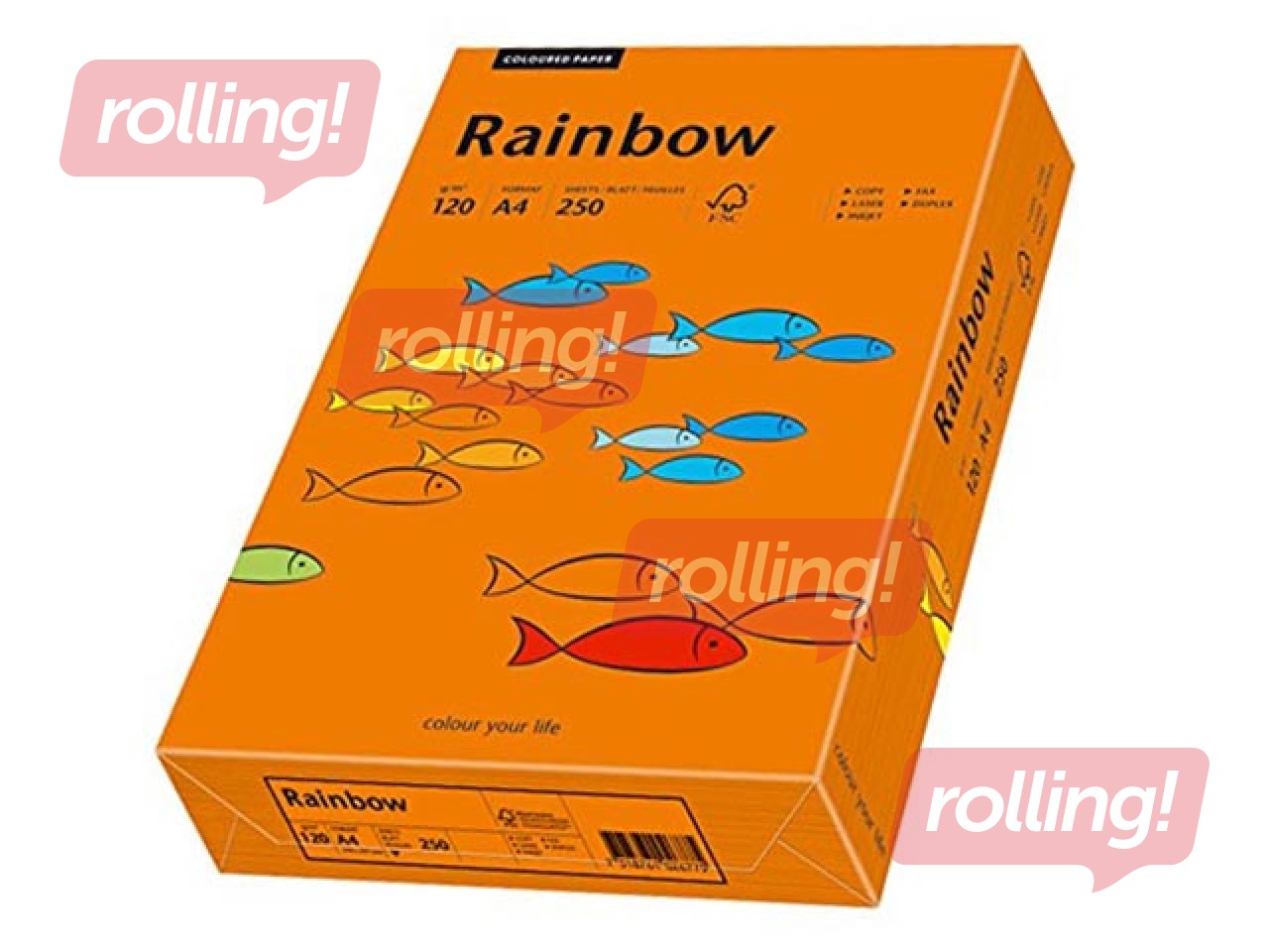 Papīrs Rainbow ir nepārklāts krāsainais papīrs caurspīdīgā iepakojumā, piemērots visa veida printeriem.