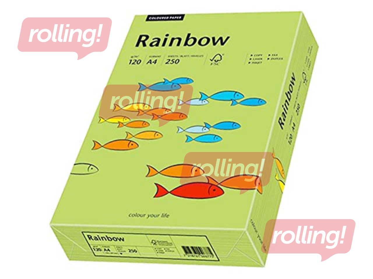 Papīrs Rainbow ir nepārklāts krāsainais papīrs caurspīdīgā iepakojumā, piemērots visa veida printeriem.