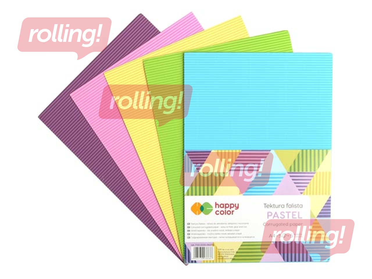 Kartons gofrēts Happy Color Pastel, A4, dažādas krāsas, 5 loksnes