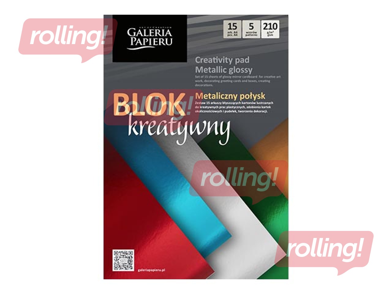 Kartons ar metālisku spīdumu, vienpusējs, A4, dažādas krāsas, 15 loksnes