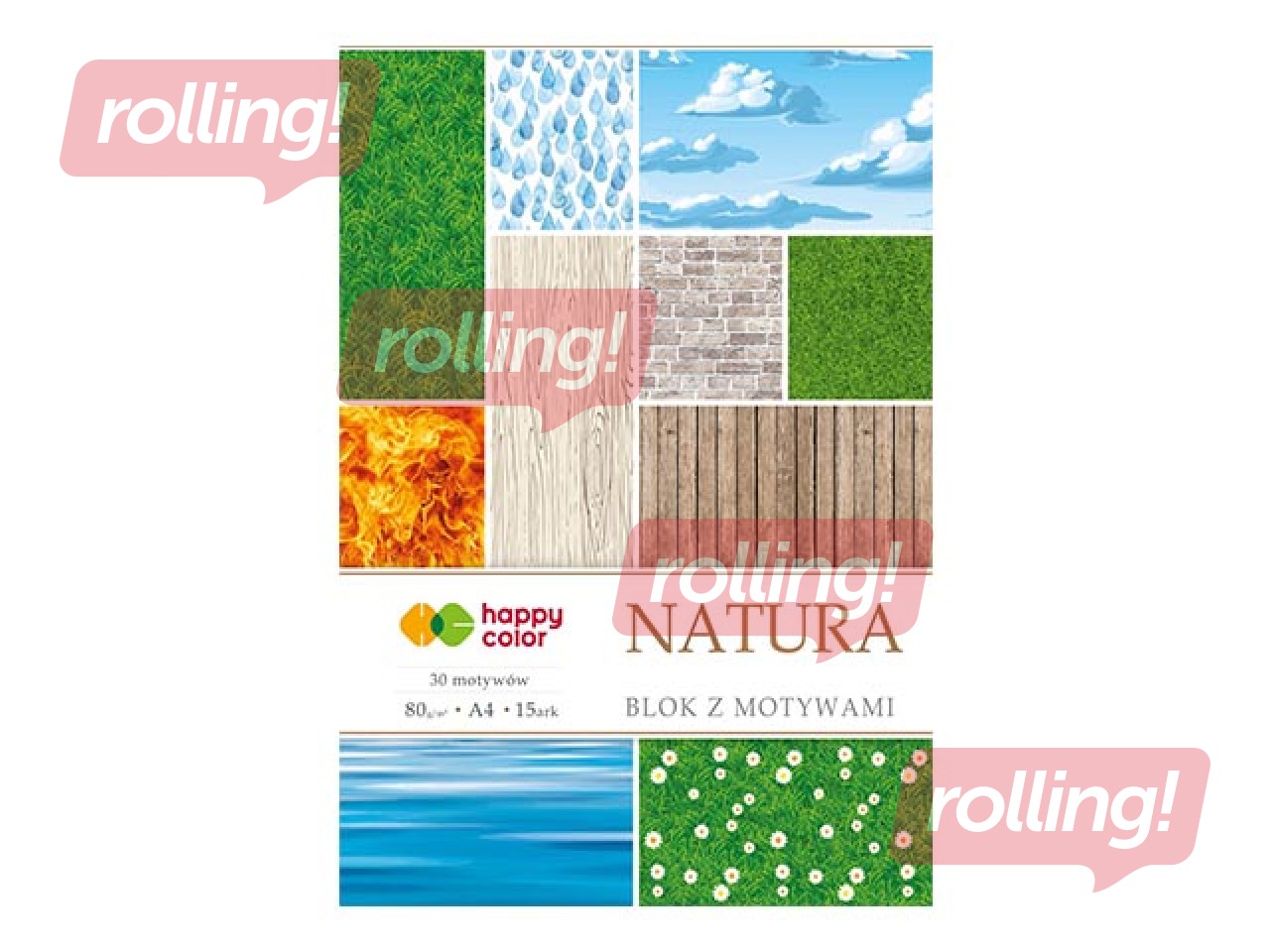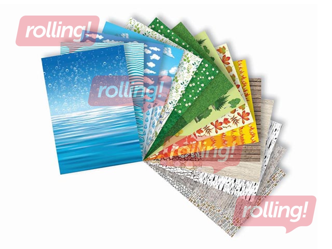 Dizaina papīrs ar motīvu Nature, A4, 80g/m², 15 loksnes, 30 motīvi