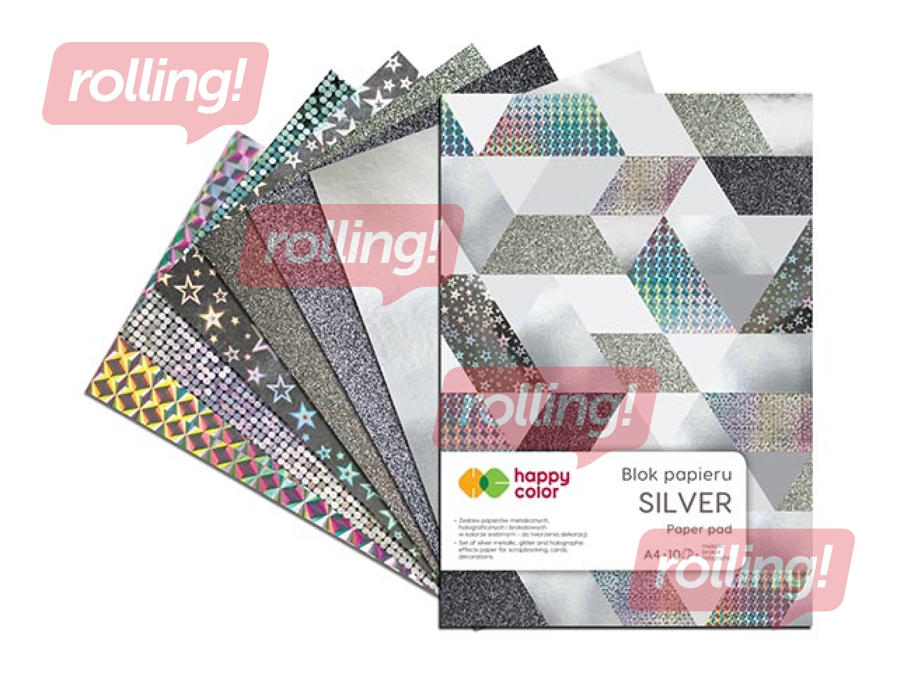 Dizaina papīrs Silver, A4, sudraba toņi, 150-230g/m², 10 loksnes