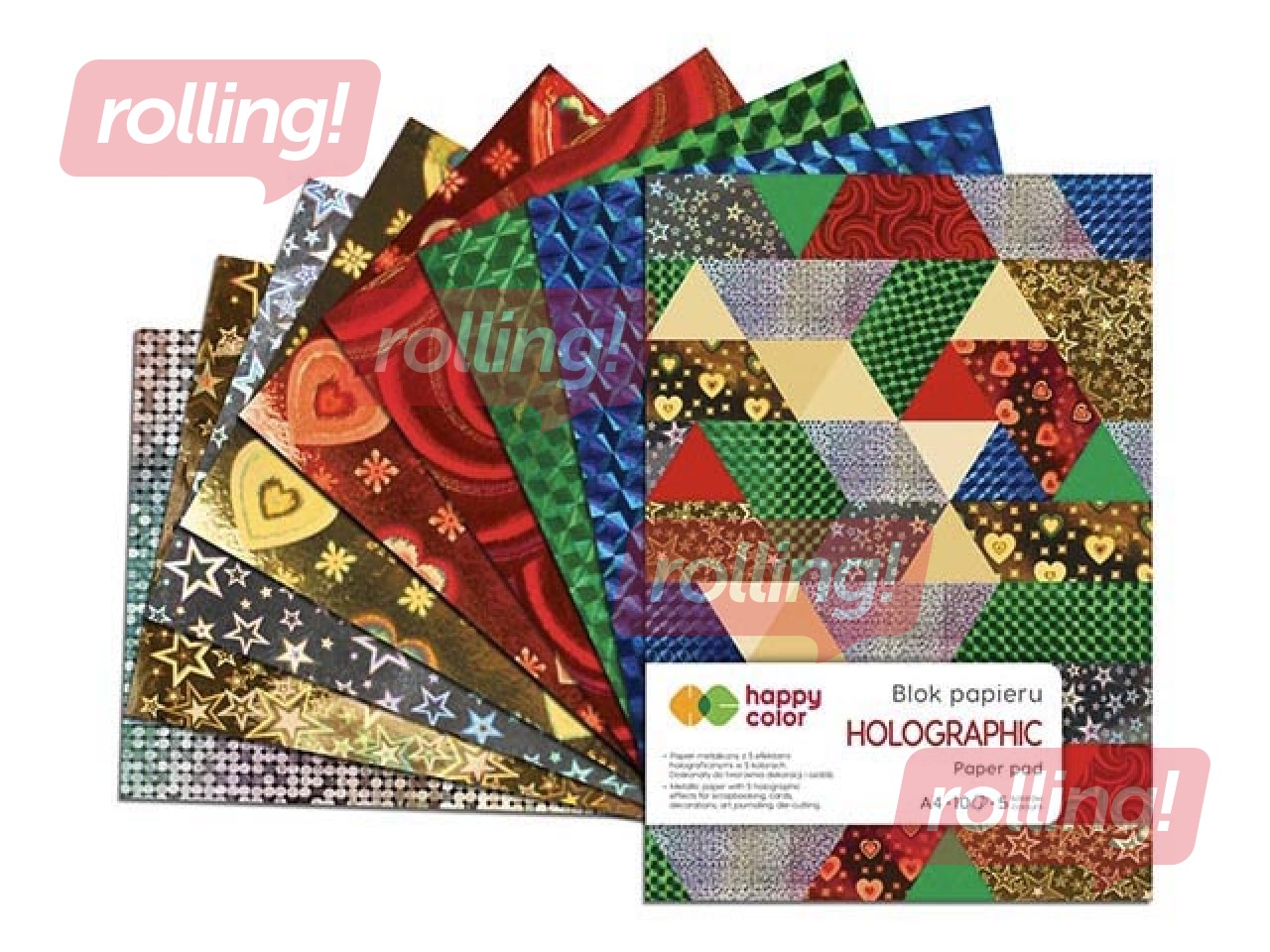Dizaina papīrs Holographic, A4, 75g/m², 10 loksnes, 5 motīvi Salīdzināt