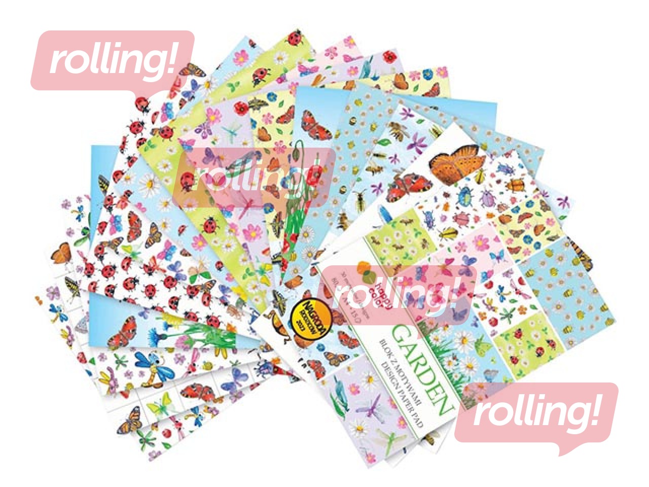 Dizaina papīrs ar motīvu Garden, 30 dārza motīvi, A4, 80 g/m², 15 loksnes