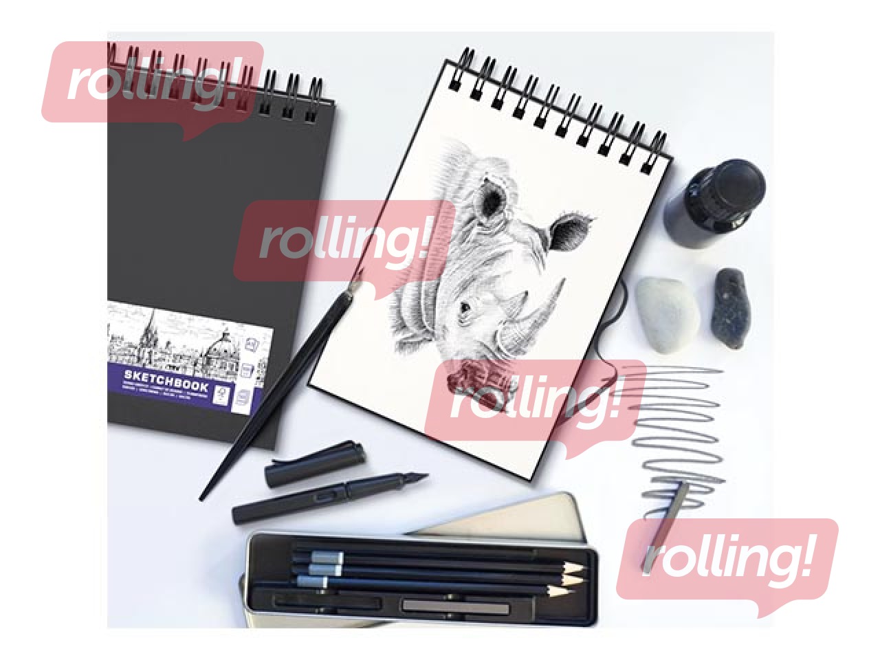 Skiču bloks ar spirāli augšā, melni cietie vāki, 50 loksnes/ 100 lpp, 100g/m2