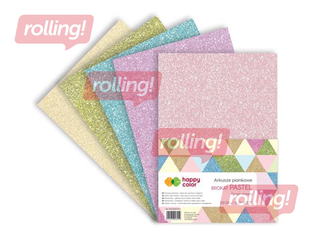 Putu loksnes Happy Color, Pastel, A4, ar spīdumiem, 5 loksnes, 5 krāsas