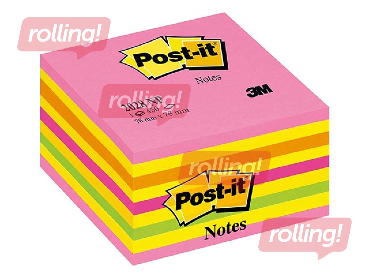 Līmlapiņu kubs Post-it, neonrozā, 76x76mm, 450 lapiņas