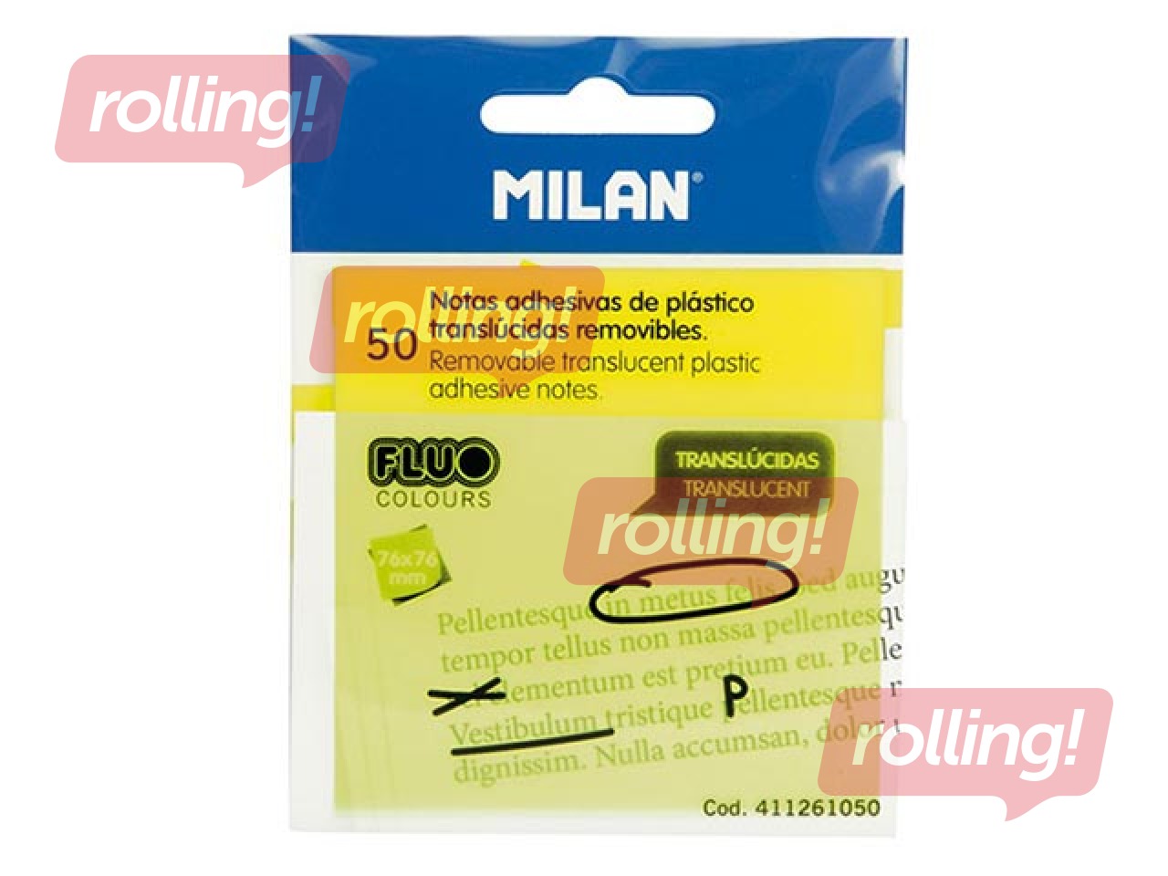Caurspīdīgas līmlapiņas Milan, neona dzeltenas, 76x76mm, 50 lapiņas