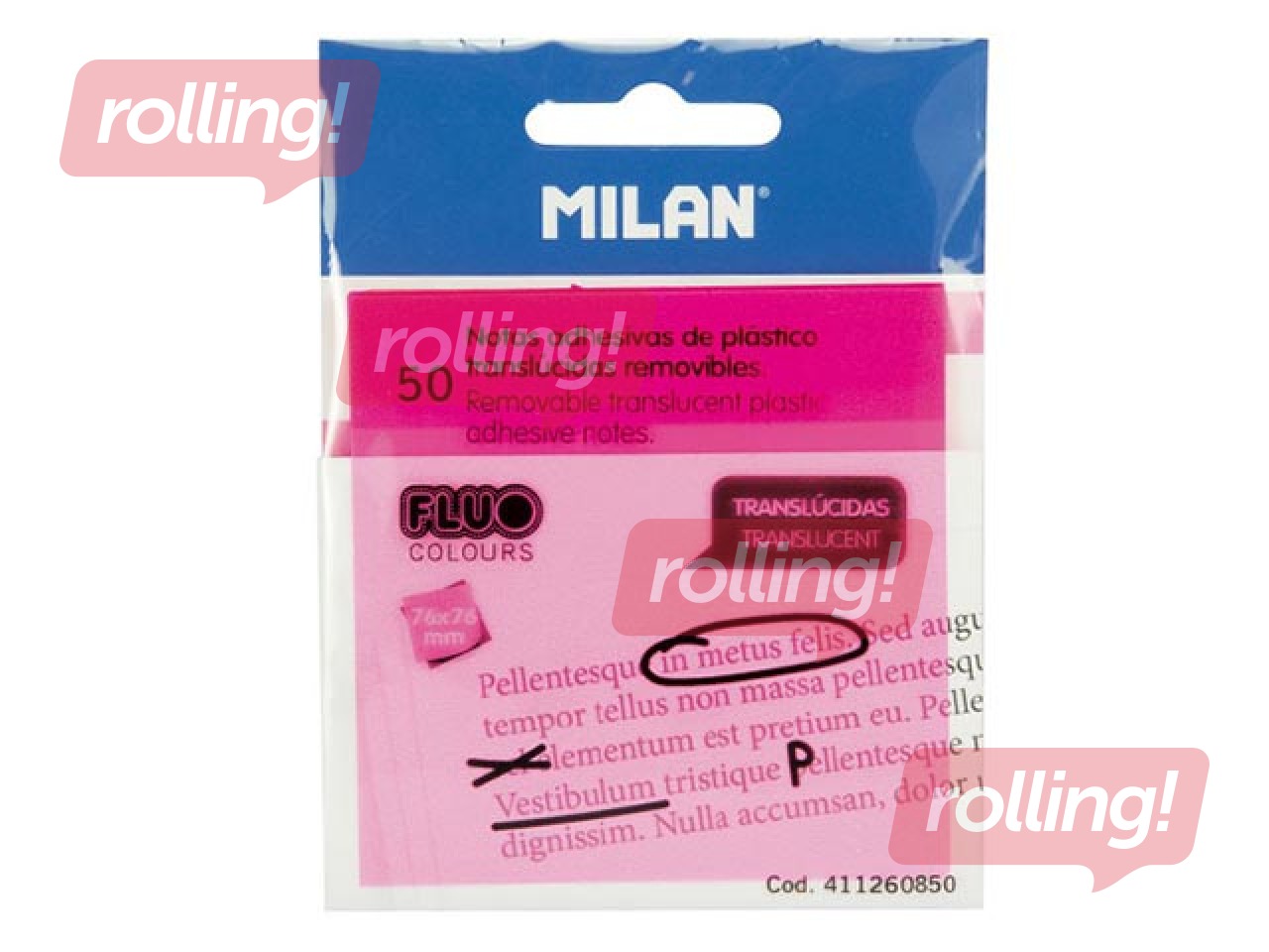 Caurspīdīgas līmlapiņas Milan, neona rozā, 76x76mm, 50 lapiņas