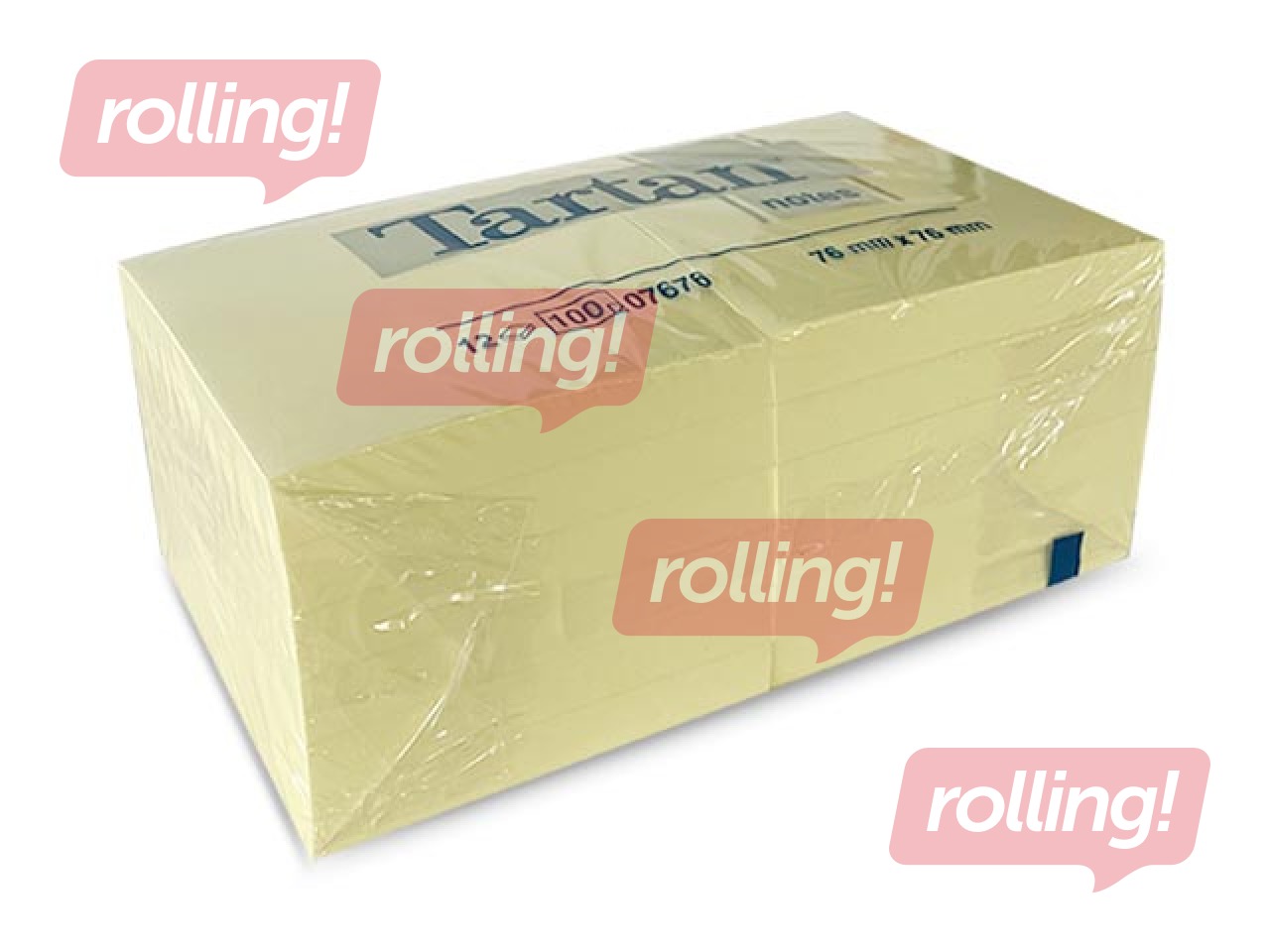 Piezīmju līmlapiņas TARTAN ar izmēru 76x76mm, dzeltenas. 12 blociņi, katrā 100 lapiņas