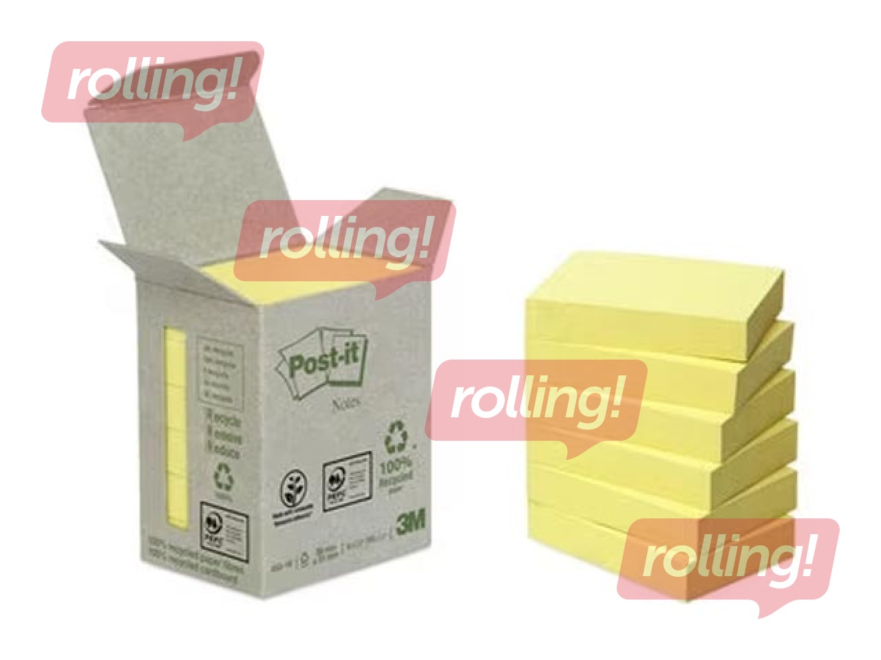 Līmlapiņas Post-it Recycled, dzeltenas, 38x51mm, 6x100 lapiņas