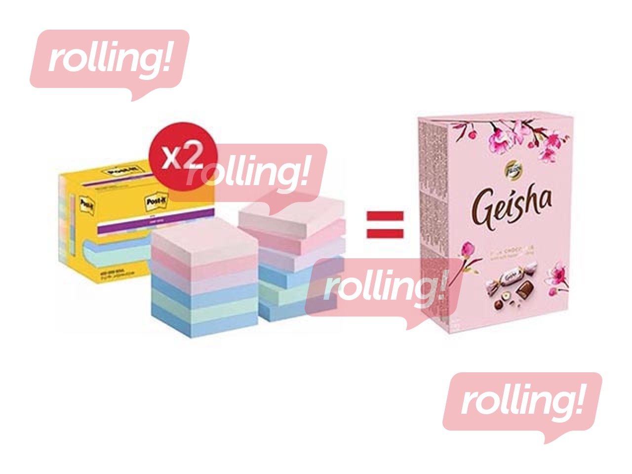 Līmlapiņas Post-it Super Sticky Soulful 47.6x47.6mm, 12x90 lapiņas + AKCIJA! Pērc līmlapiņas un saņem dāvanu!