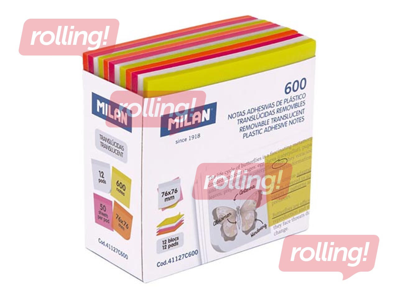 Līmlapiņas Milan, caurspīdīgas, neona krāsās, 76x76mm, 600 lapiņas