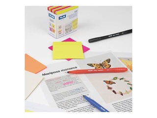 Caurspīdīgas un noņemamas plastmasas līmlapiņas 4 Fluo krāsās (balta, dzeltena, rozā un oranža). Var izmantot, lai viegli rakstītu un veiktu piezīmes ar zīmuli vai pildspalvu. 76x76 mm. 12 blociņi x 50 lapiņas, kopā 600 lapiņas.