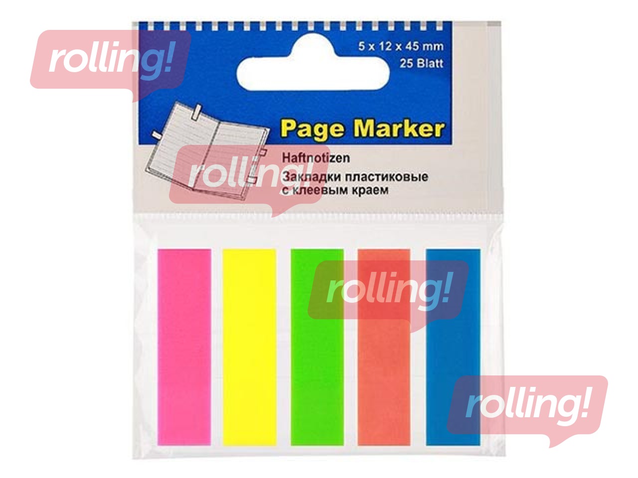 Marķēšanas indeksi plastikāta Office Point, dažādas krāsas, 45x12mm, 5х25 lapiņas
