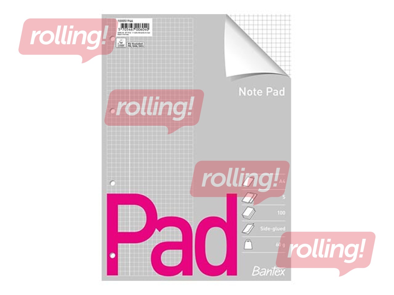 Piezīmju bloknots Bantex, A4, rūtiņu, 100 lapas