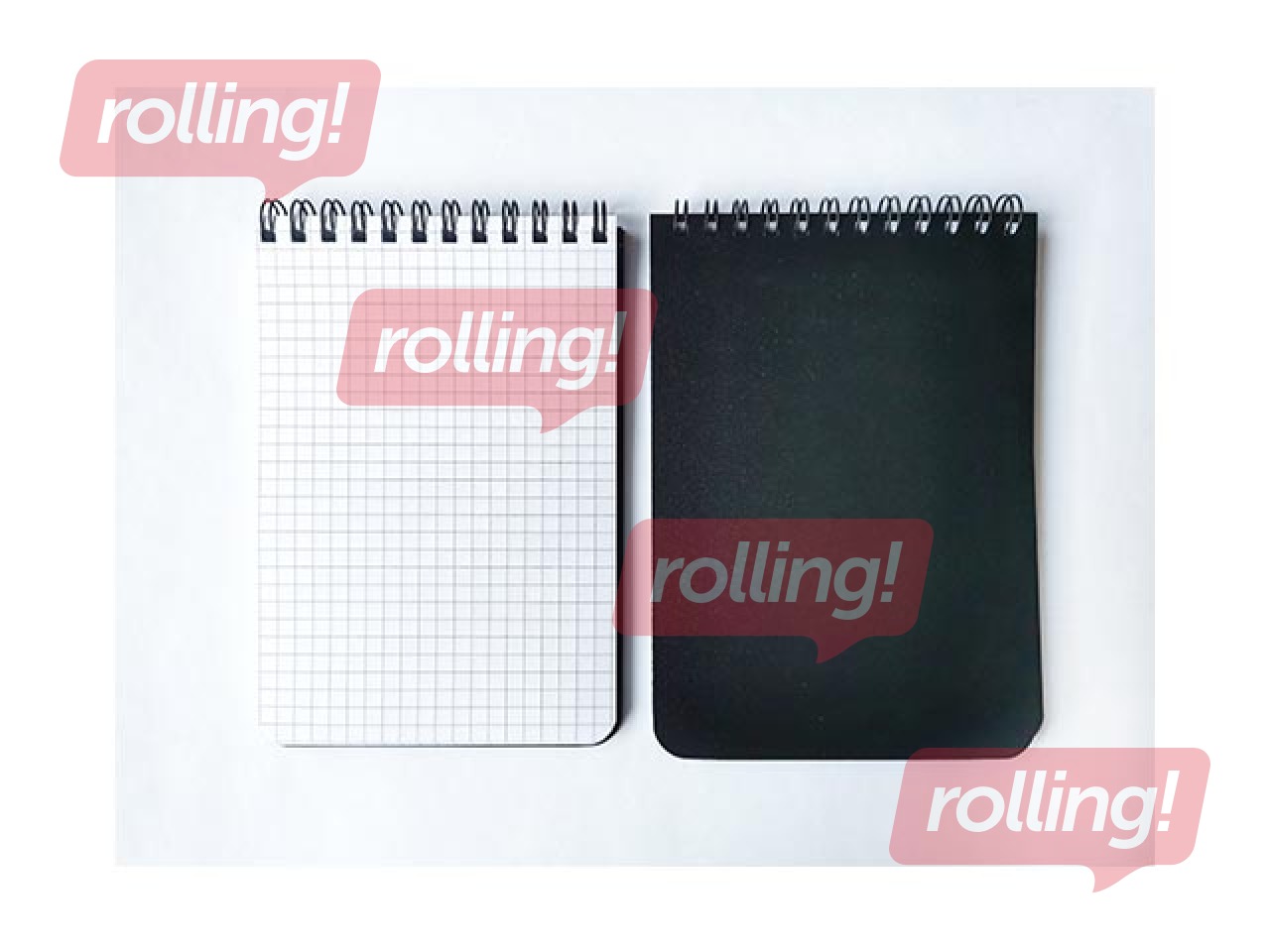 Piezīmju bloknots SM-LT, A6, melns plastikāta vāks, ar spirāli, rūtiņu, 60 lapas