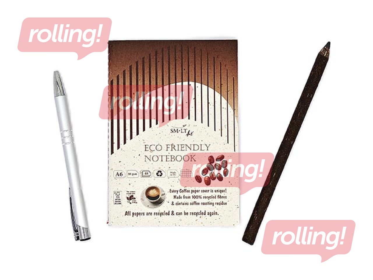 Šī klade ir izgatavota no 100% pārstrādāta papīra, un to var atkārtoti pārstrādāt. Papīrs satur kafijas grauzdēšanas atlikumus, piešķirot tai īpašu raksturu un videi draudzīgu vērtību. Klade iekļauj 48 rūtiņu lapas, ideāli piemērotas piezīmju veikšanai, zīmēšanai vai citiem rakstīšanas darbiem.