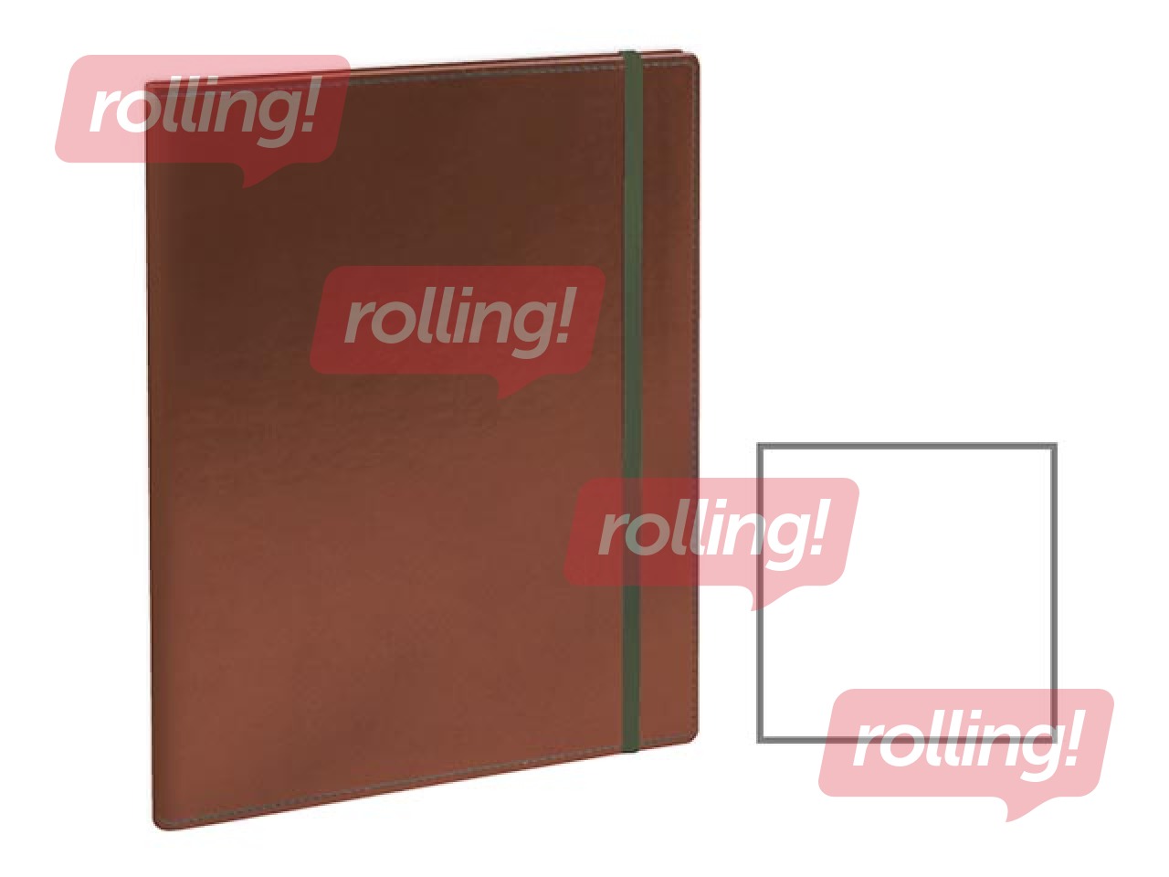 Vāki: elastīgi mākslīgās ādas vāki ar noapaļotiem stūriem, gumijas aizdare, kabata vāka iekšpusē.