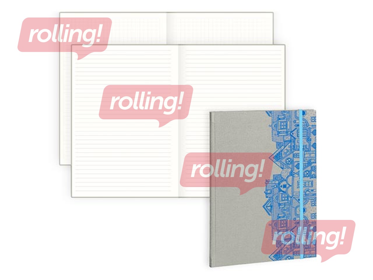 Piezīmju grāmata Textile, A5, rūtiņu, pelēka ar zilu gumiju