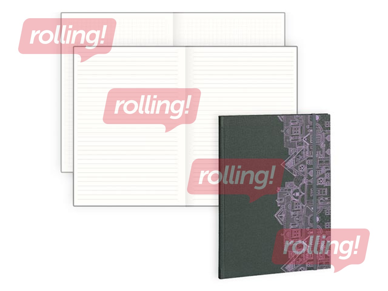 FCS tonēts, nekrītots papīrs, elastīgi sietspiedē apdrukāti auduma materiāla vāki, gumijas aizdare. 144 lpp.
