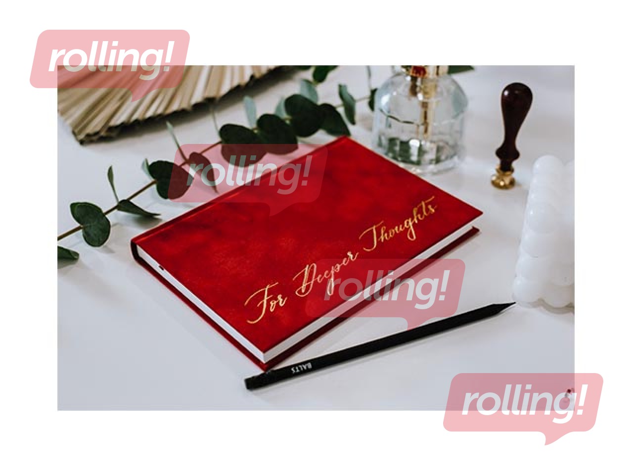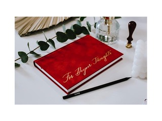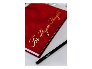 Dizaina piezīmju grāmata, kas liek izcelties. Īpašā BALTS piezīmju grāmata sarkanos samta vākos ar zelta krāsas uzspiedumu.