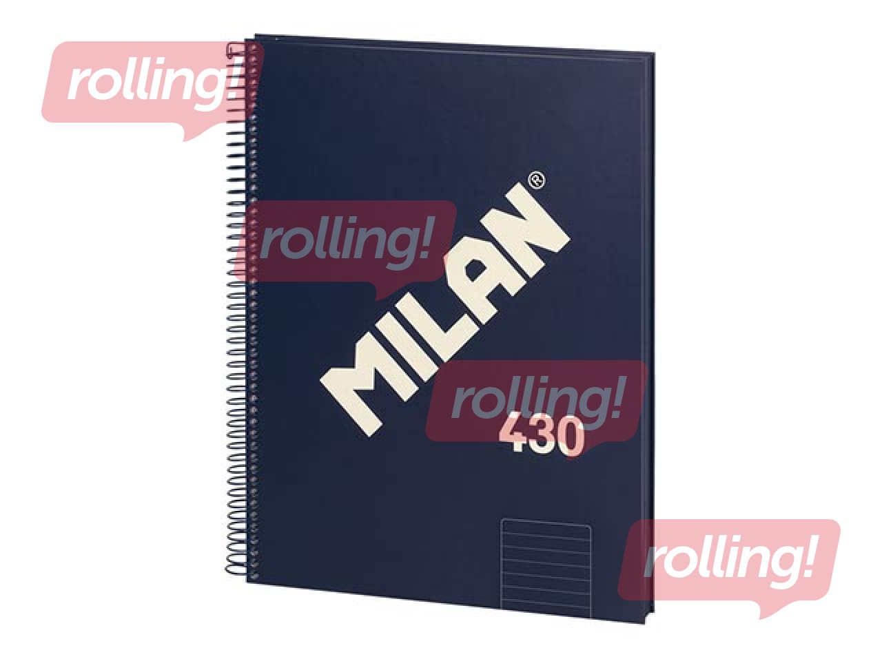 Klade ar spirāli cietos vākos Milan, A4, zila, līniju, 80 lapas