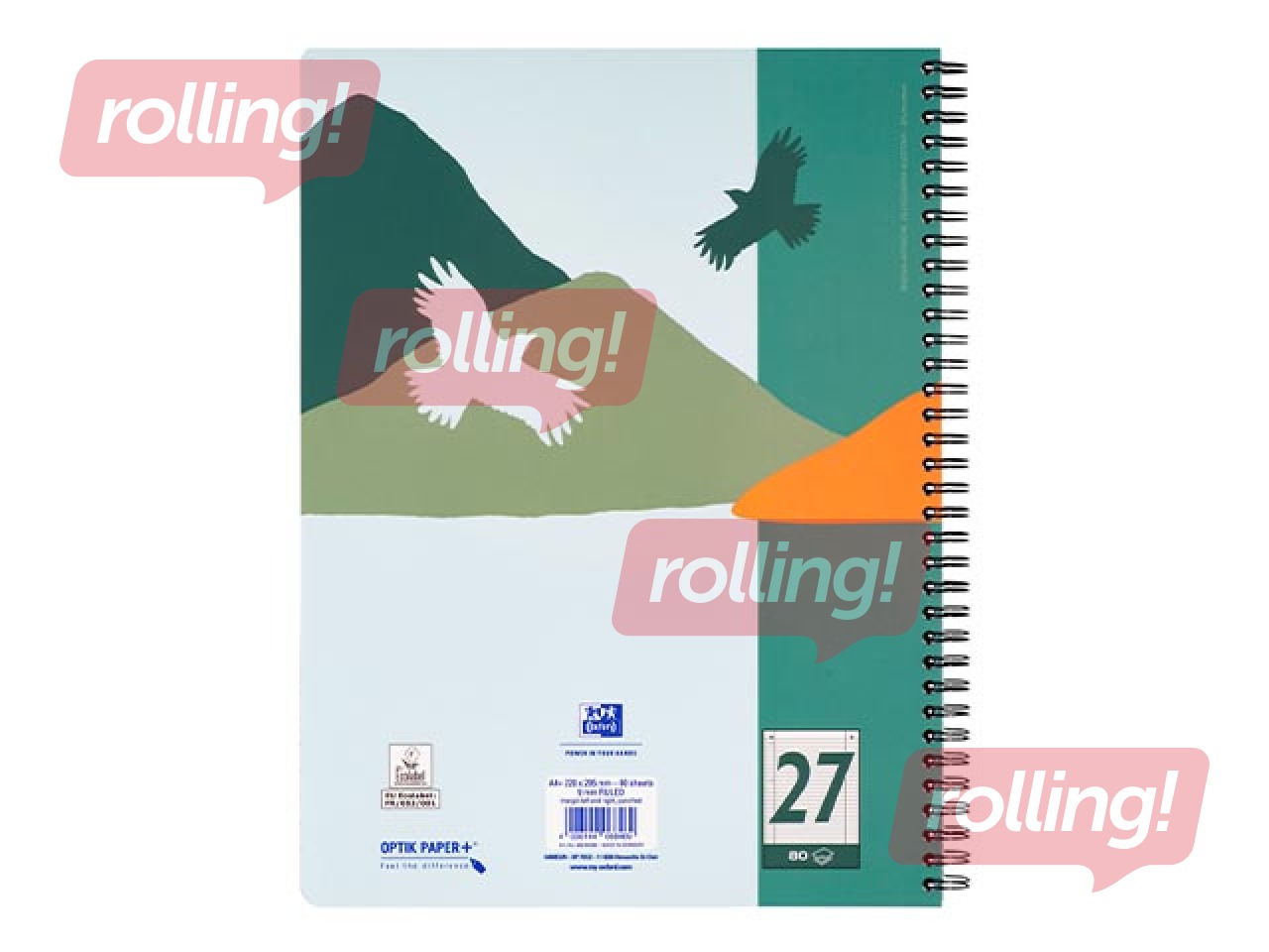 Klade ar spirāli Oxford Garden, A4+, līniju, 80 lapas
