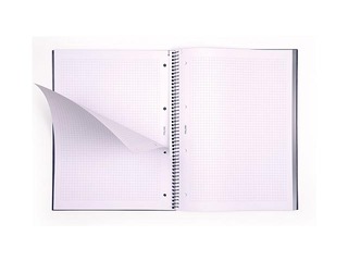 Klade A4, rūtiņu (5 x 5 mm) ar spirāli un cieto vāku.