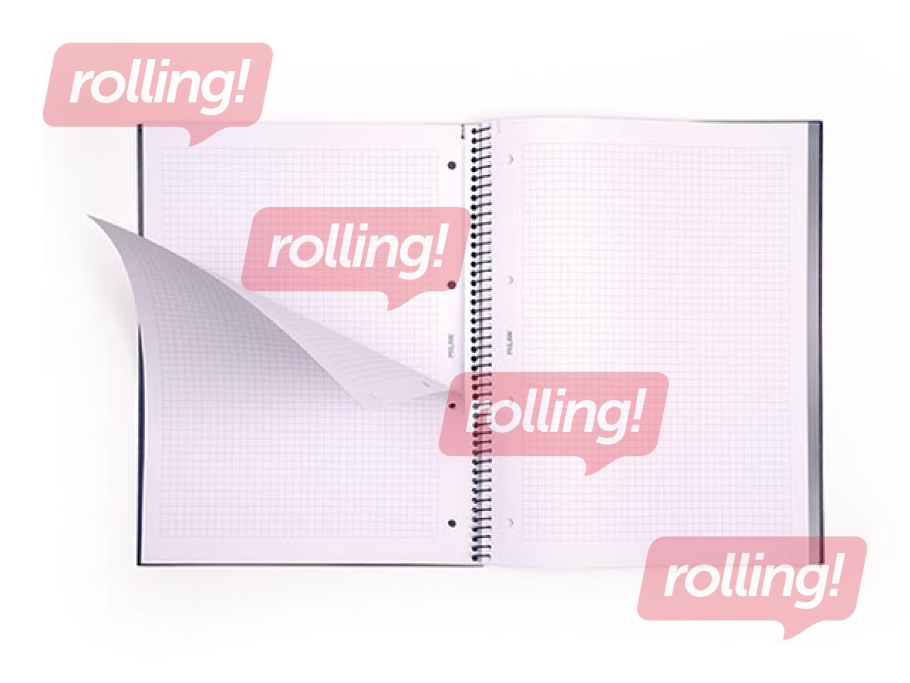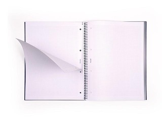 Klade A4, rūtiņu (5 x 5 mm) ar spirāli un cieto vāku.