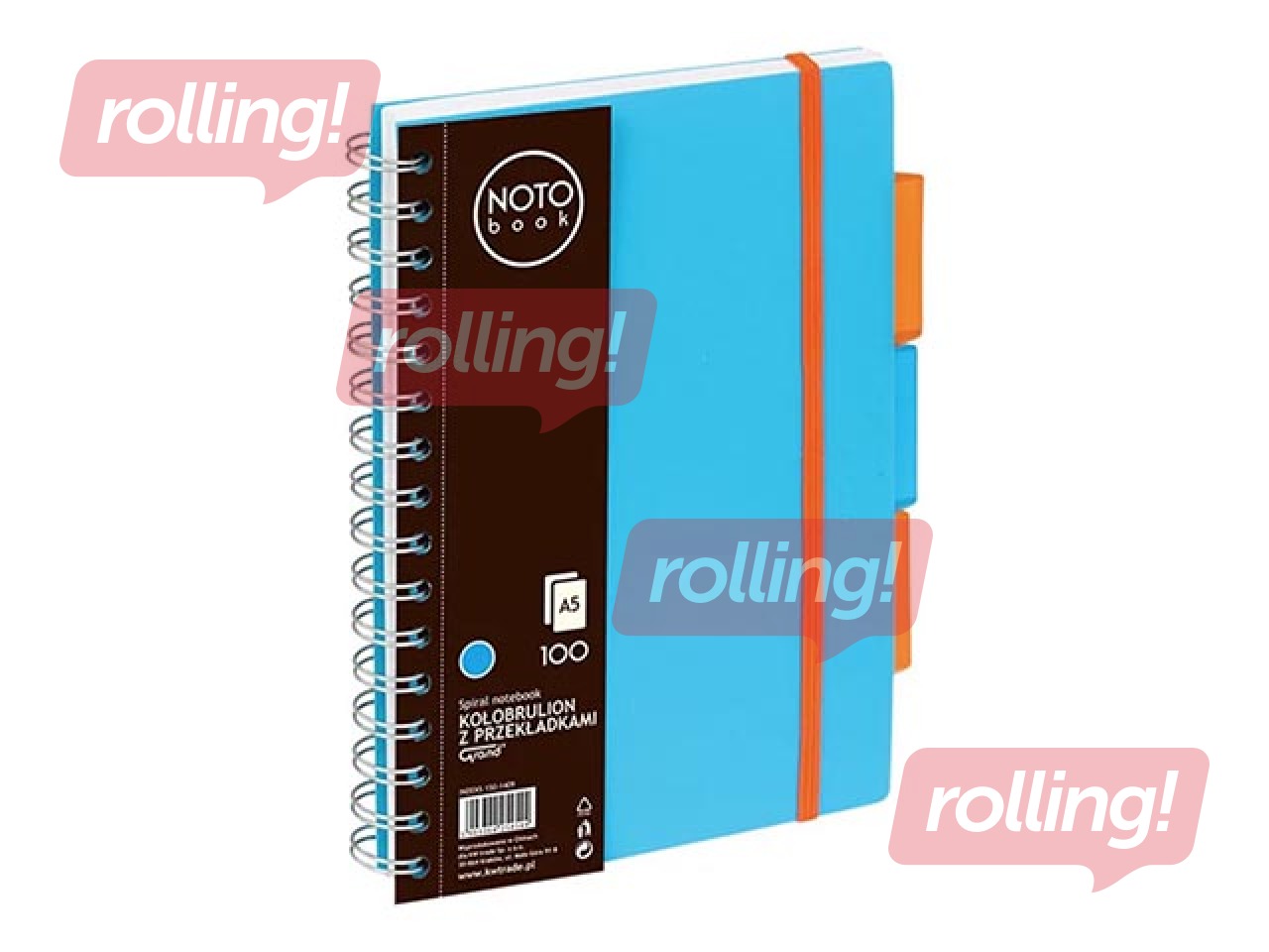 Klade ar spirāli un 3 sadalītājiem, A5, zila, rūtiņu, 100 lapas