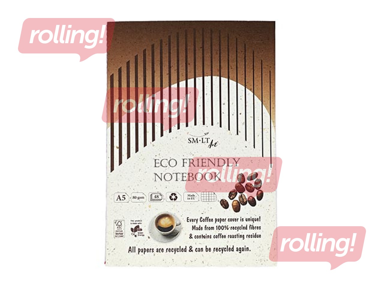 Šī klade ir izgatavota no 100% pārstrādāta papīra, un to var atkārtoti pārstrādāt. Papīrs satur kafijas grauzdēšanas atlikumus, piešķirot tai īpašu raksturu un videi draudzīgu vērtību. Klade iekļauj 48 rūtiņu lapas, ideāli piemērotas piezīmju veikšanai, zīmēšanai vai citiem rakstīšanas darbiem. A5 formāts nodrošina pietiekami daudz vietas, lai komfortabli veiktu pierakstus.