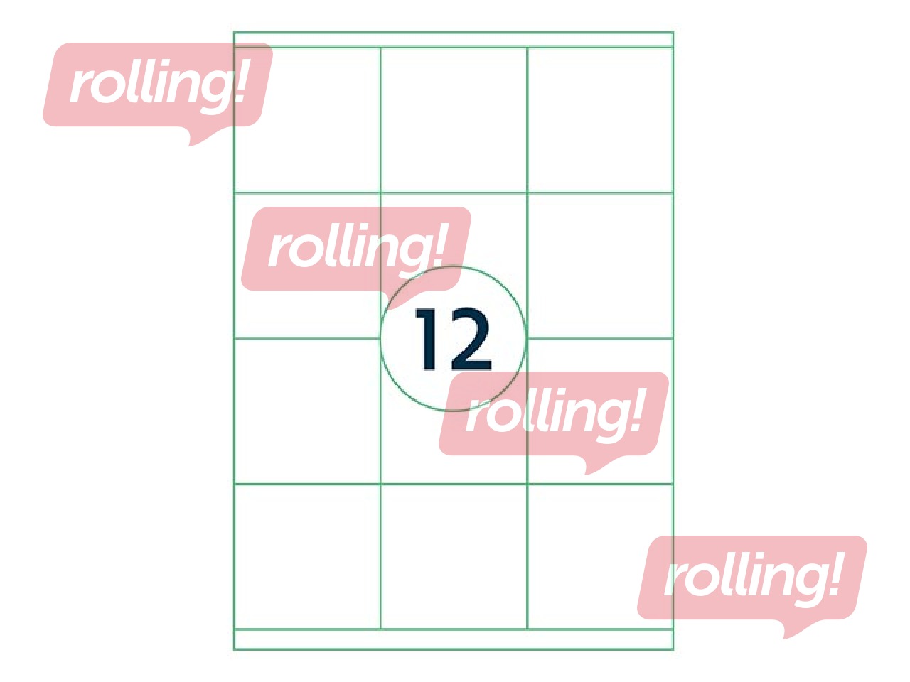 Pašlīmējošas baltas uzlīmes, piemērotas apdrukai ar tintes, lāzerprinteriem, kopēšanas tehnikai vai rakstīšanai ar roku. Uz A4 lapas 12 uzlīmes. Iepakojumā 100 lapas.