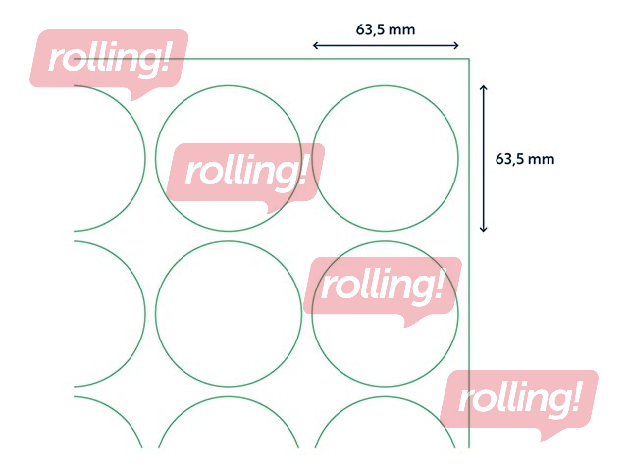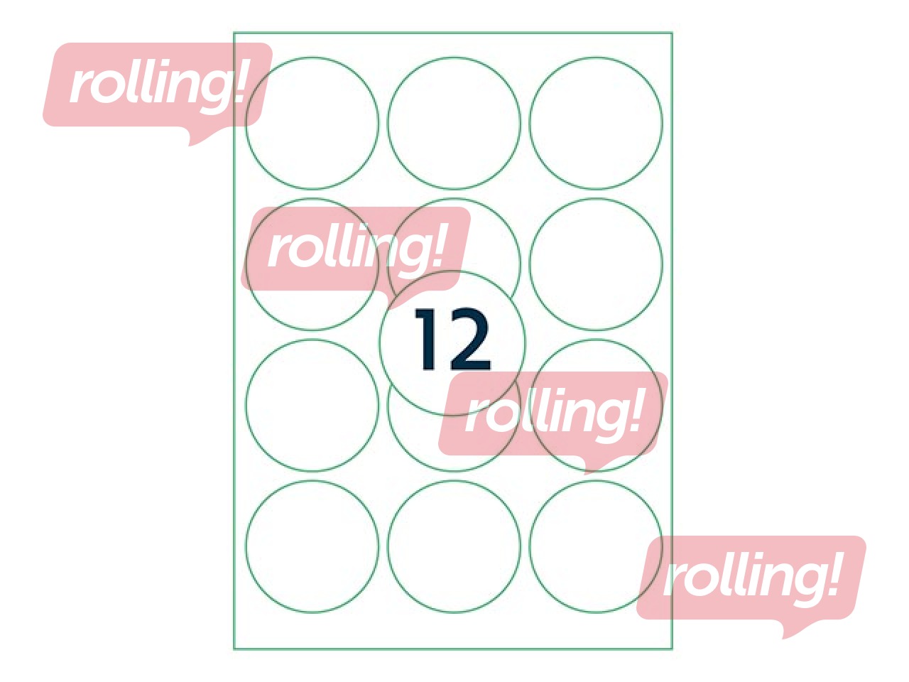 Uzlīmes Rillprint, diametrs - 63.5 mm,100 loksnes, baltas - apaļas