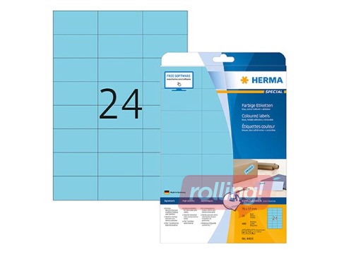 Uzlīmes Herma Special, A4, 70x37 mm, 20 loksnes, zilas