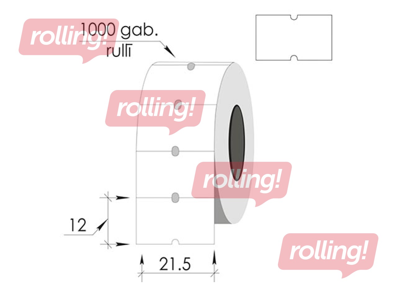 Izturīga, grūti noņemama uzlīme, paredzēta saldētiem produktiem. Druka uz uzlīmes tiek veikta ar tintes rulli, kas tiek uzstādīts pistolē. Izmēri: 21.5x12mm. Vienrindu. 1000 uzlīmes rullī. Krāsa-balta.