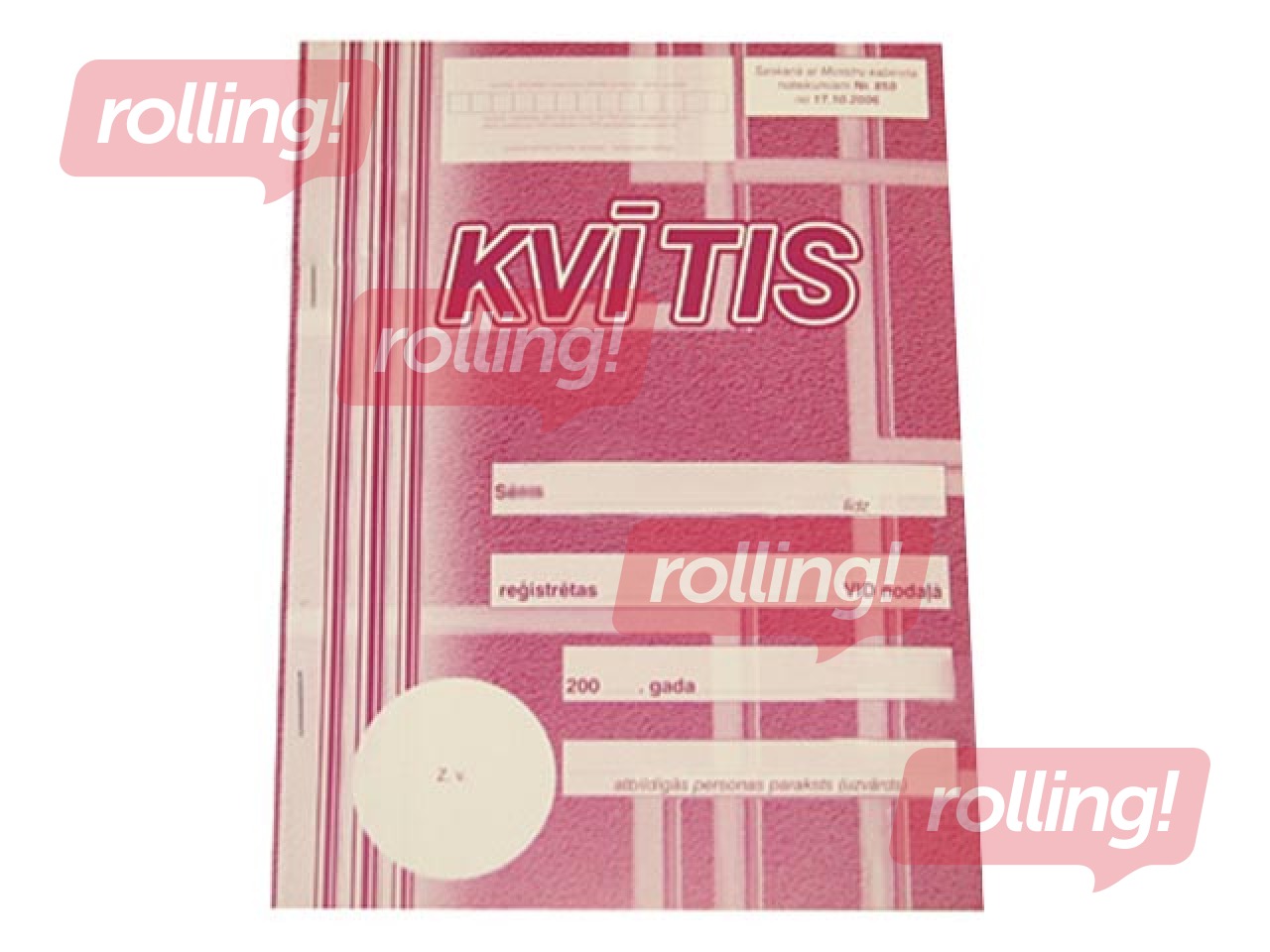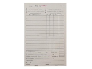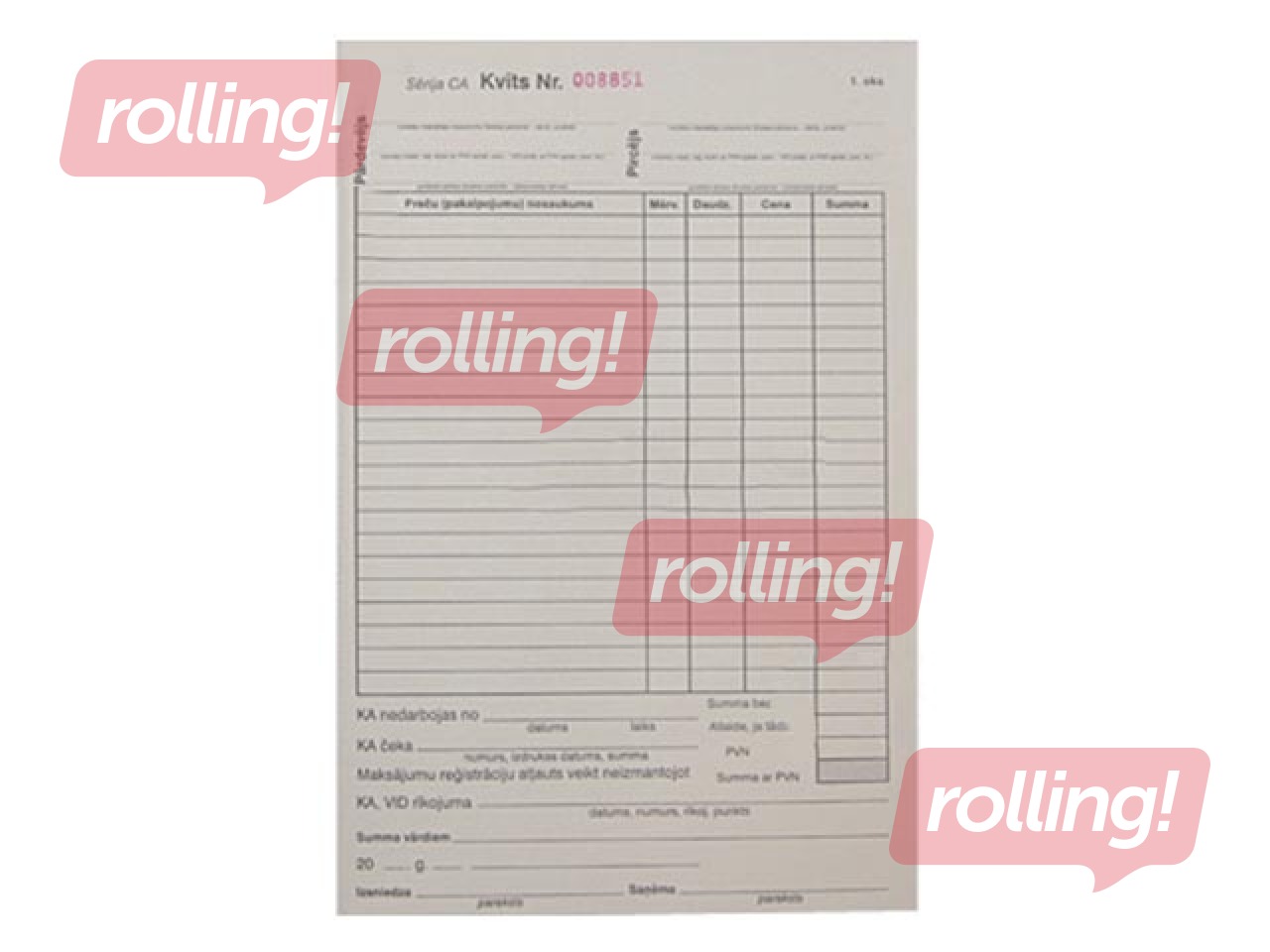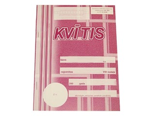 Kvīts ir darījumu apliecinošs dokuments. Laikā, kad nedarbojas elektroniskais kases aparāts, juridiskām un fiziskām personām, kuras ir atbrīvotas no kases aparāta, un, ja to izmantošanu nosaka citi normatīvie akti. Paškopējošās, 3 eksemplāri (25 kompl)