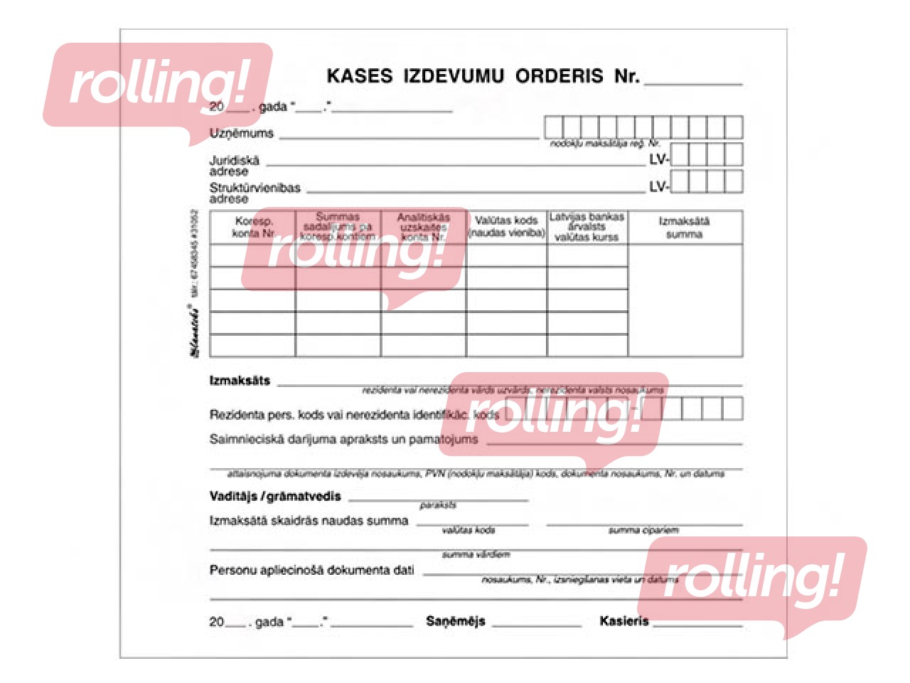 Kases izdevumu orderis, 1/3 no A4, paškopējošas, 2 eksemplāri, 50 komplekti