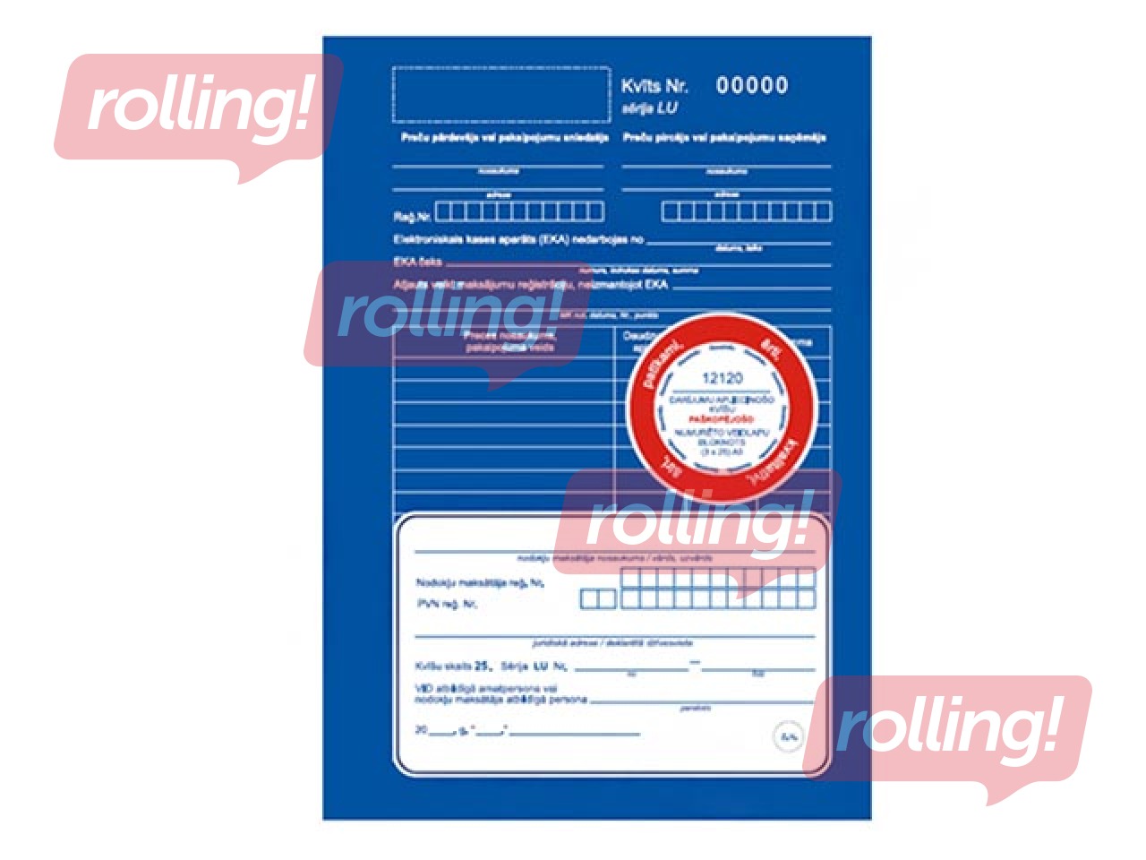 A5, paškopējošs, numurēras lapas 3 kārtas, 25 komplekti, 1 bloks.