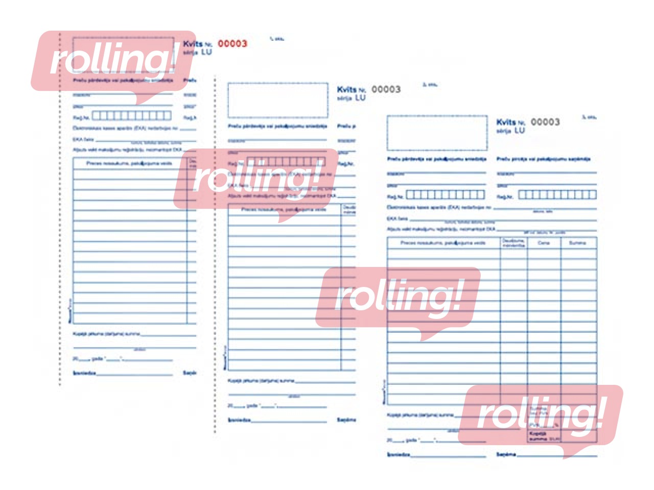 Darījumu apliecinošās kvītis, A5, paškopējošas, 3 eksemplāri, 25 komplekti