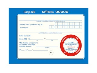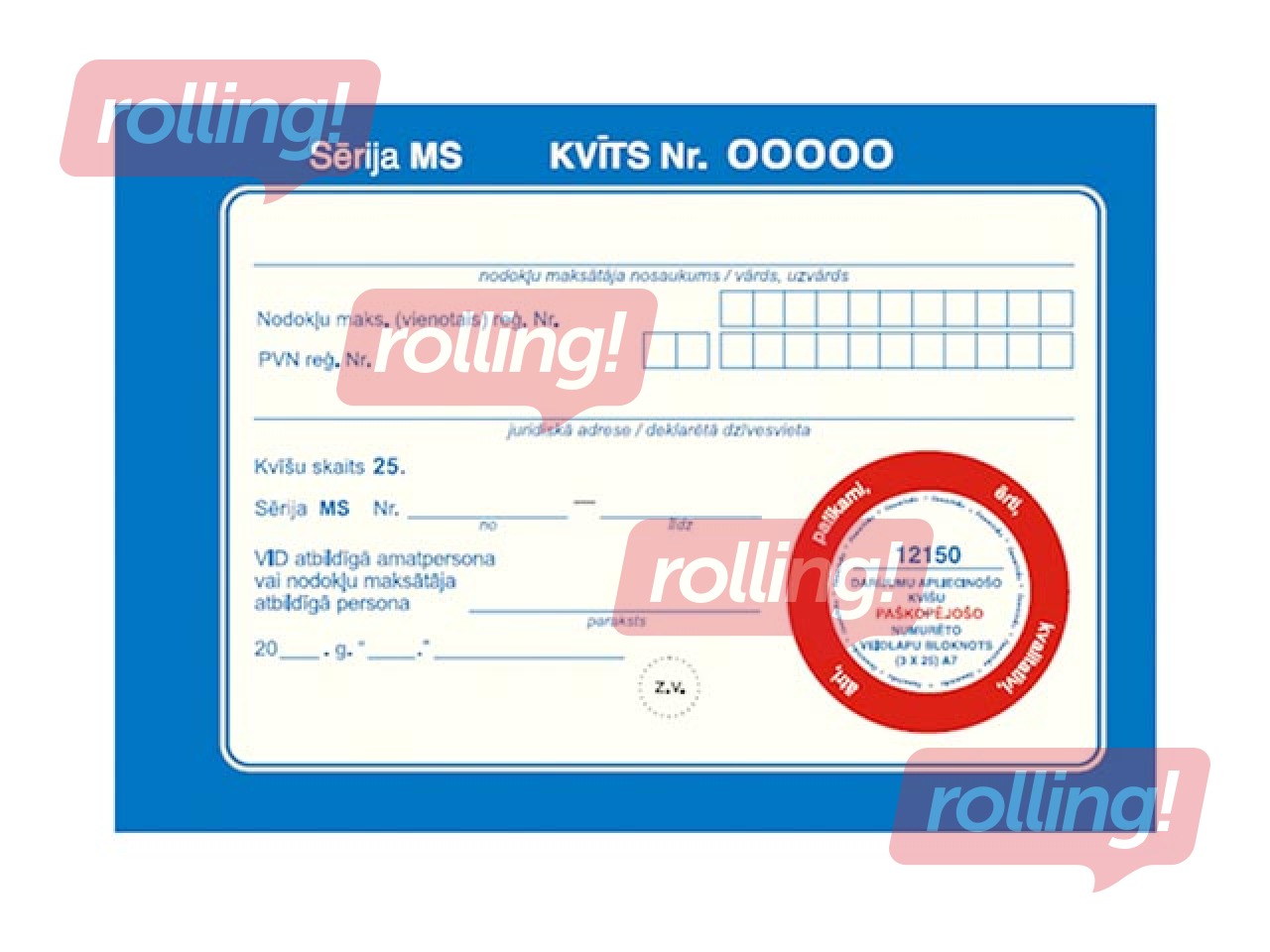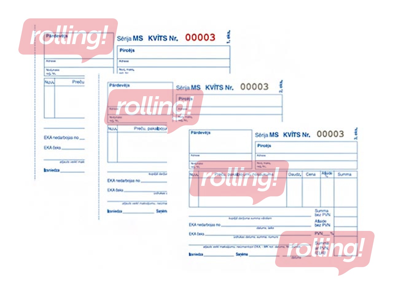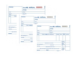 Papīrs: paškopējošs, 3 kārtas, numurētas lapas, 25 komplekti.