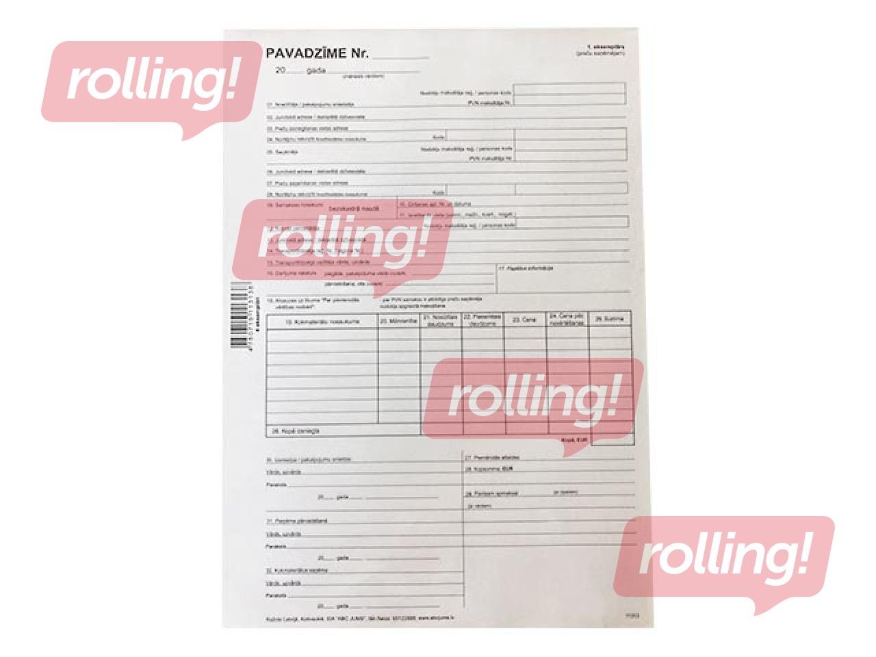 Kokmateriālu pavadzīme, A4, paškopējoša, 4 eksemplāri, 1 komplekts