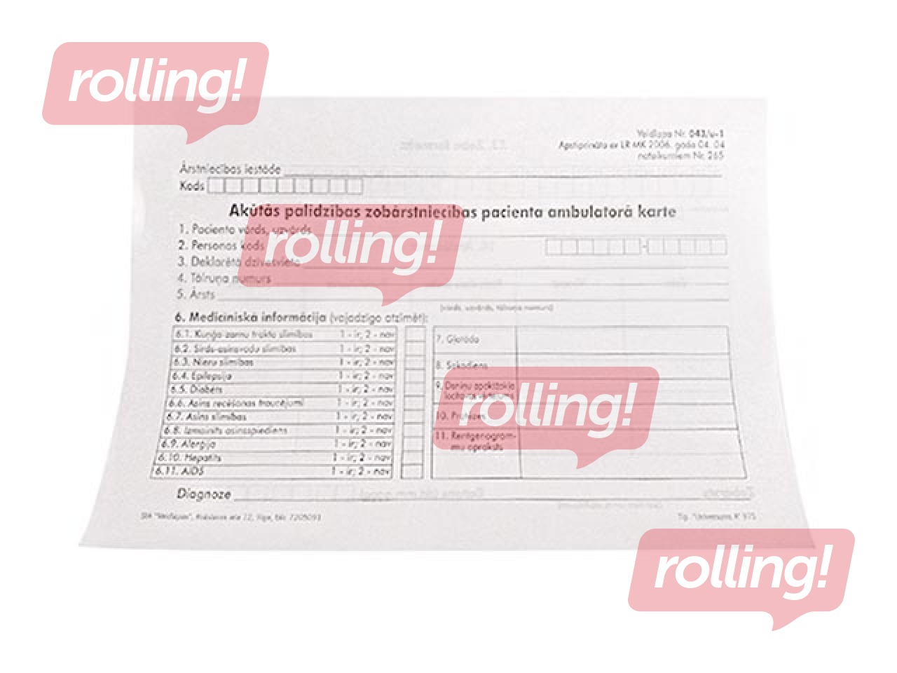 Akūtās palīdzības zobārstniecības pacienta ambulatorā karte, A5D, 100 loksnes