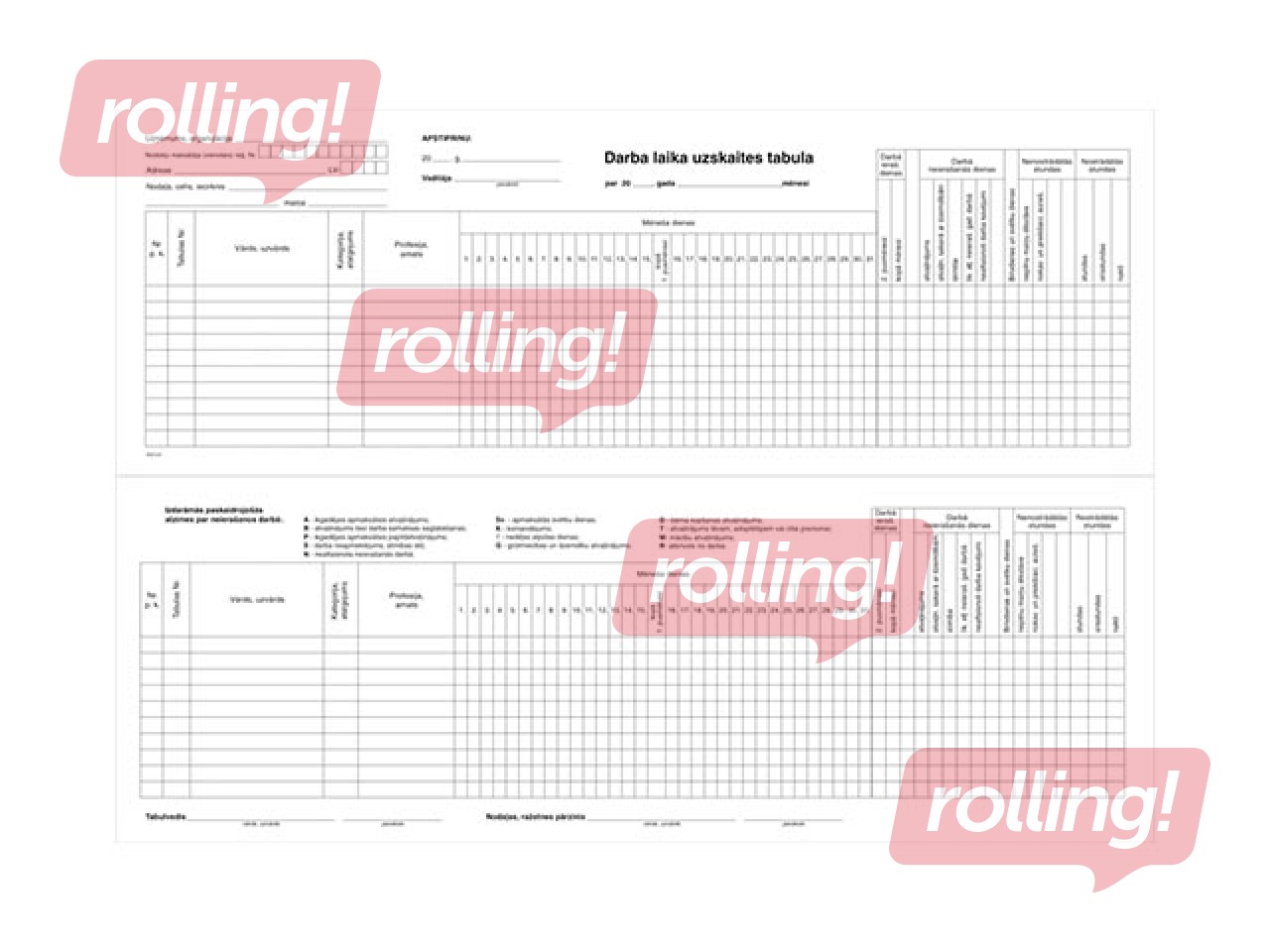 Darba laika uzskaites tabula, 1/2 no A3, 100 gab.