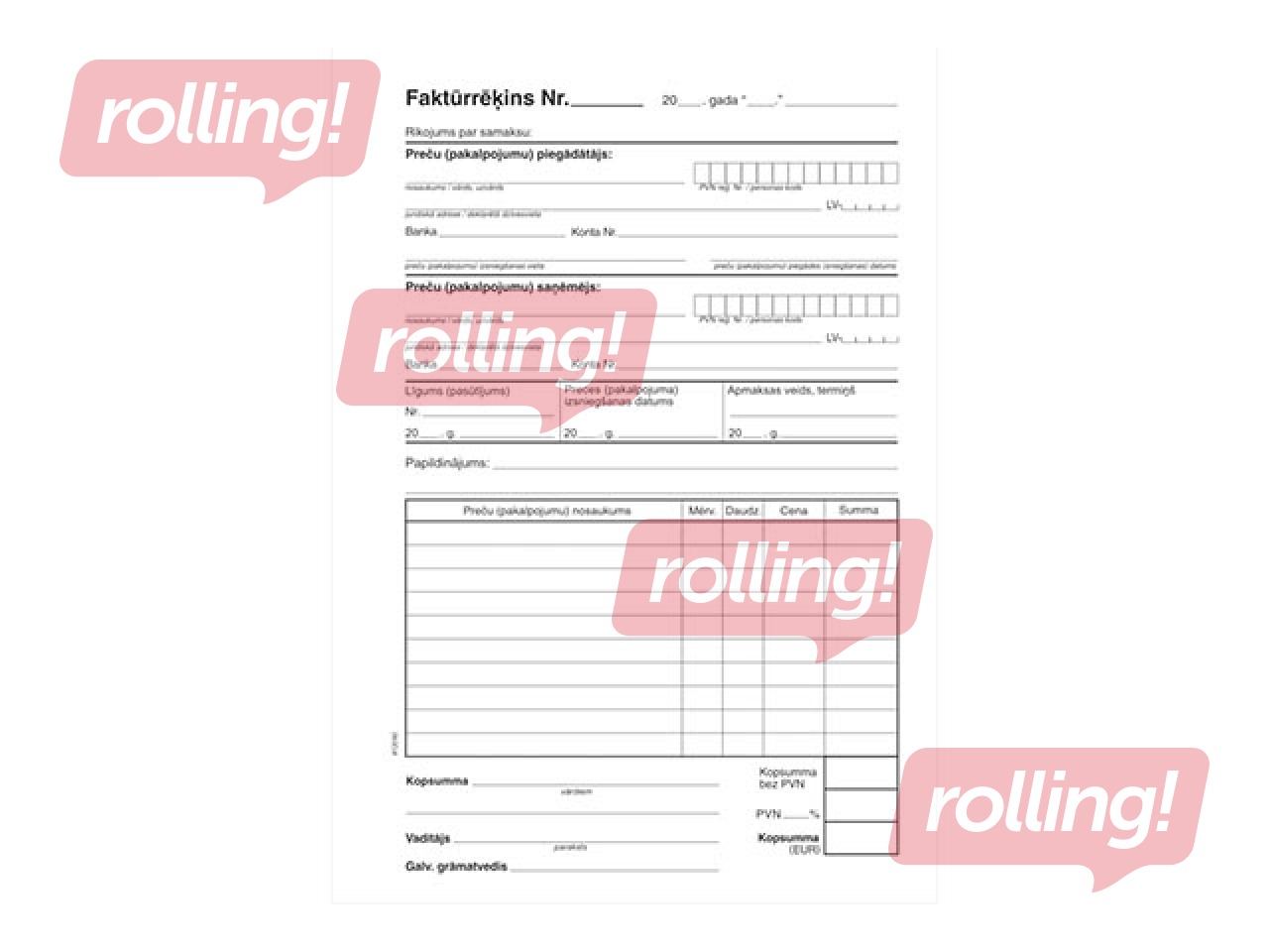 Faktūrrēķins, A5V, paškopējošs, vienpusējs