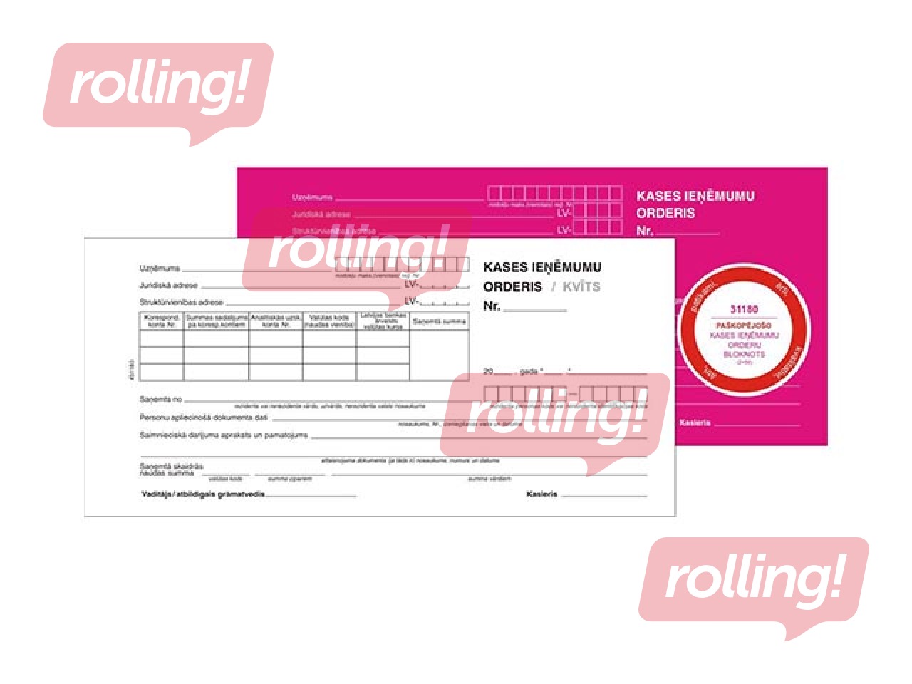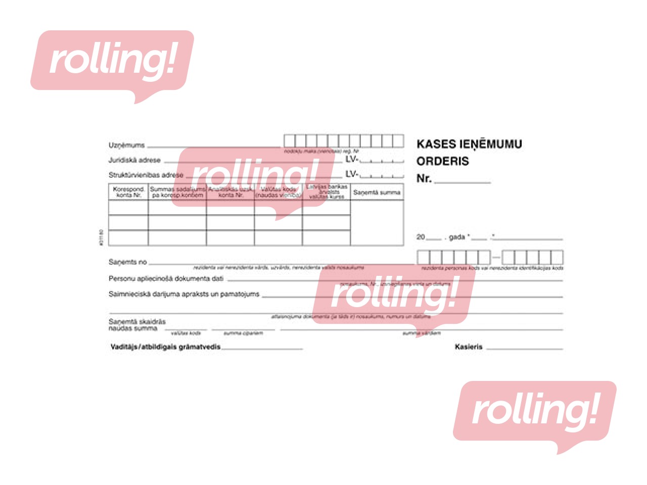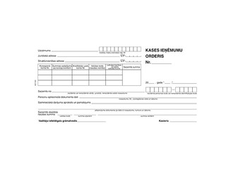 Kases ieņēmumu orderis ar kvīti, 1/3 no A4, paškopējošs, 50 komplekti