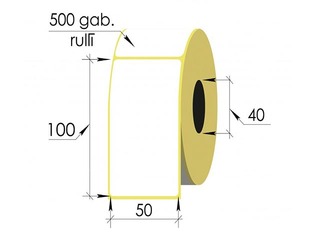 Papīra uzlīme ar termojūtīgu segumu, kurš kļūst tumšs augstas temperatūras ietekmē. Ir jūtīgas pret mitrumu (izpludina attēlu) un augstu temperatūru(dzeltē, balē). Druka bez kārtridža. Izmēri: 50mm platums x 100mm garums, 1 rinda, iekšejā čaula 40mm. 500 uzlīmes rullī.