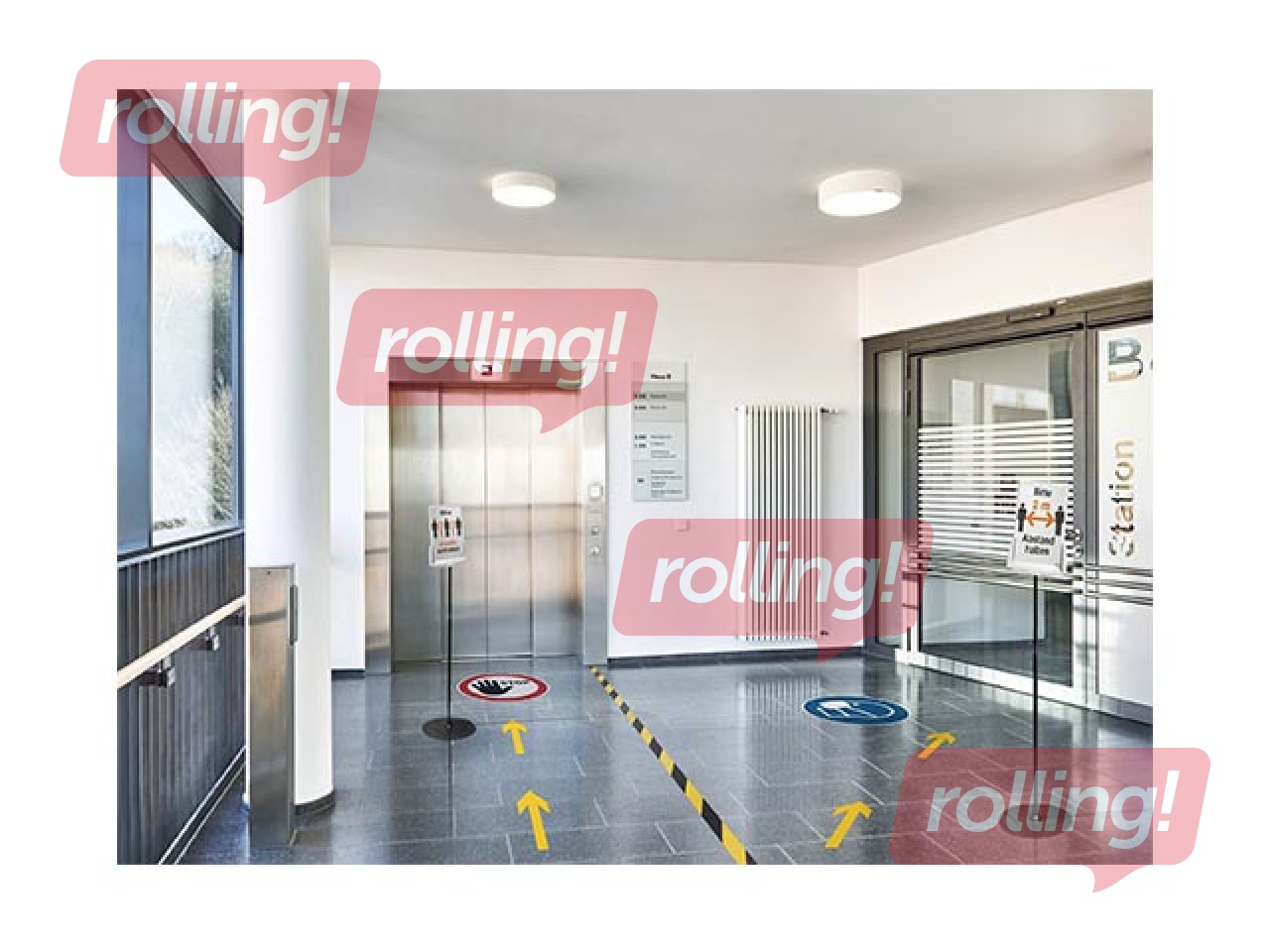 Noņemama zīme grīdas novietošanai lielveikalos, fitnesa centros, viesnīcās, restorānos, skaistumkopšanas salonos utt.