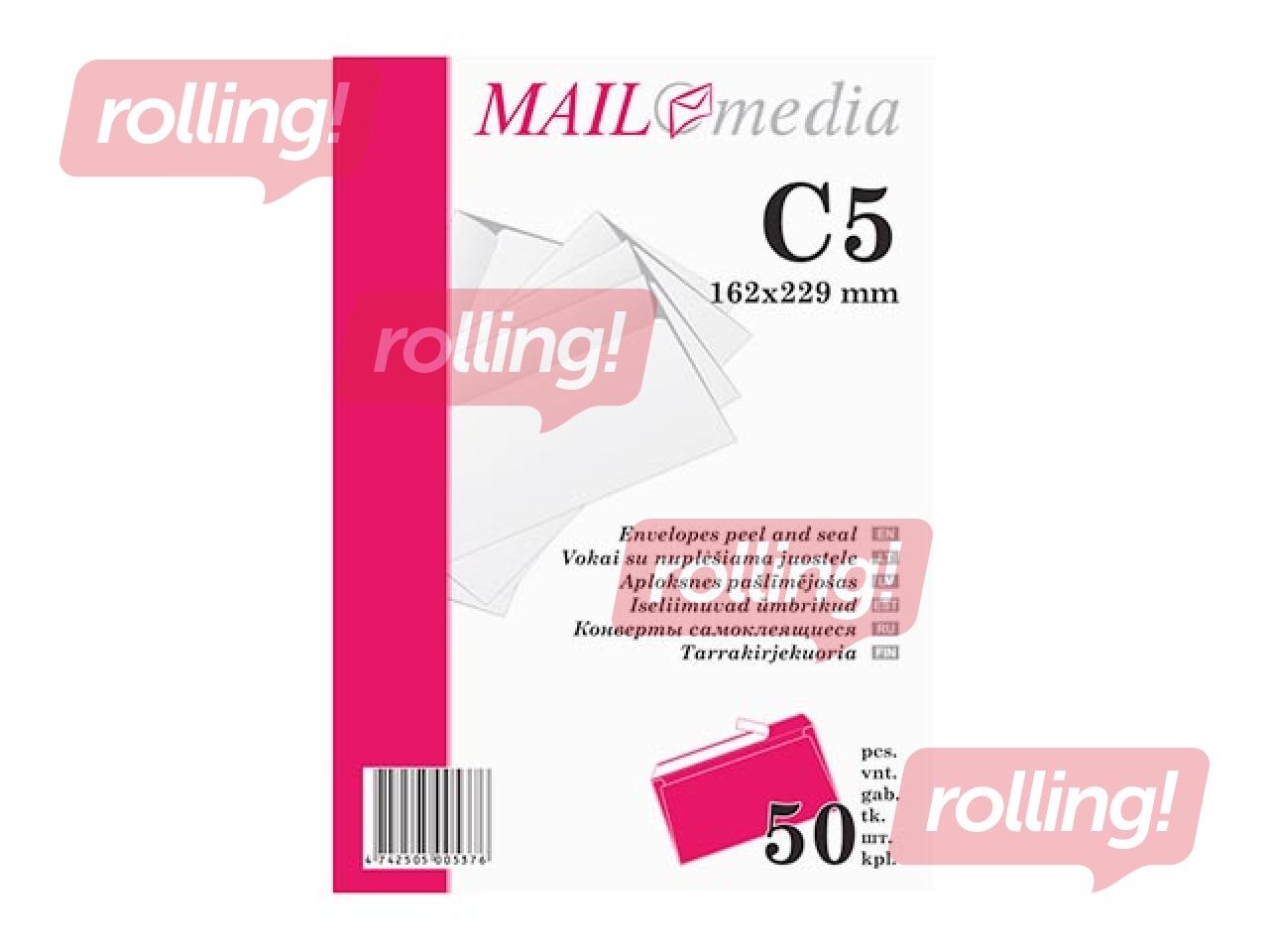 Aploksnes pašlīmējošas ar lentu, C5, 50 gab., baltas