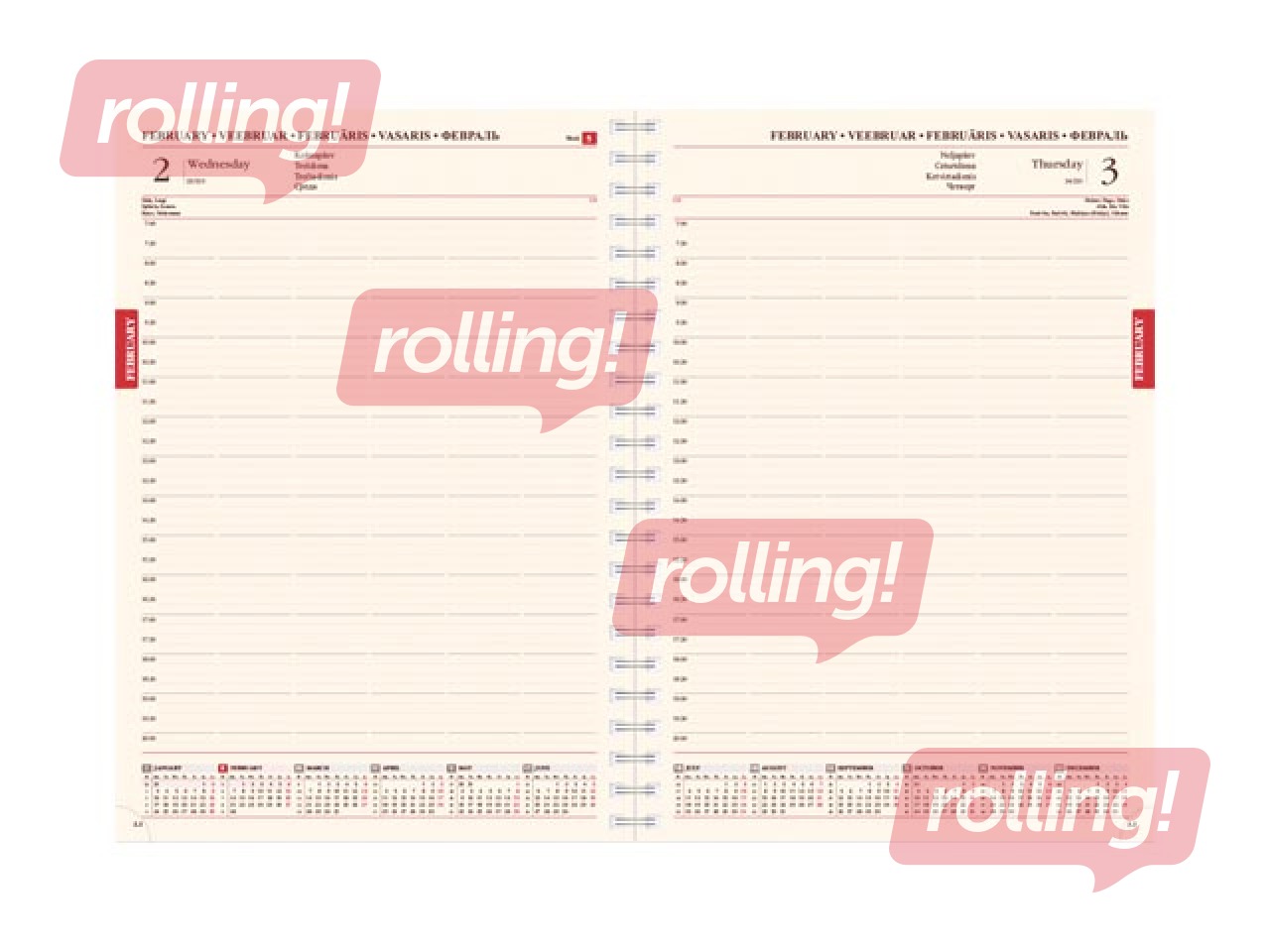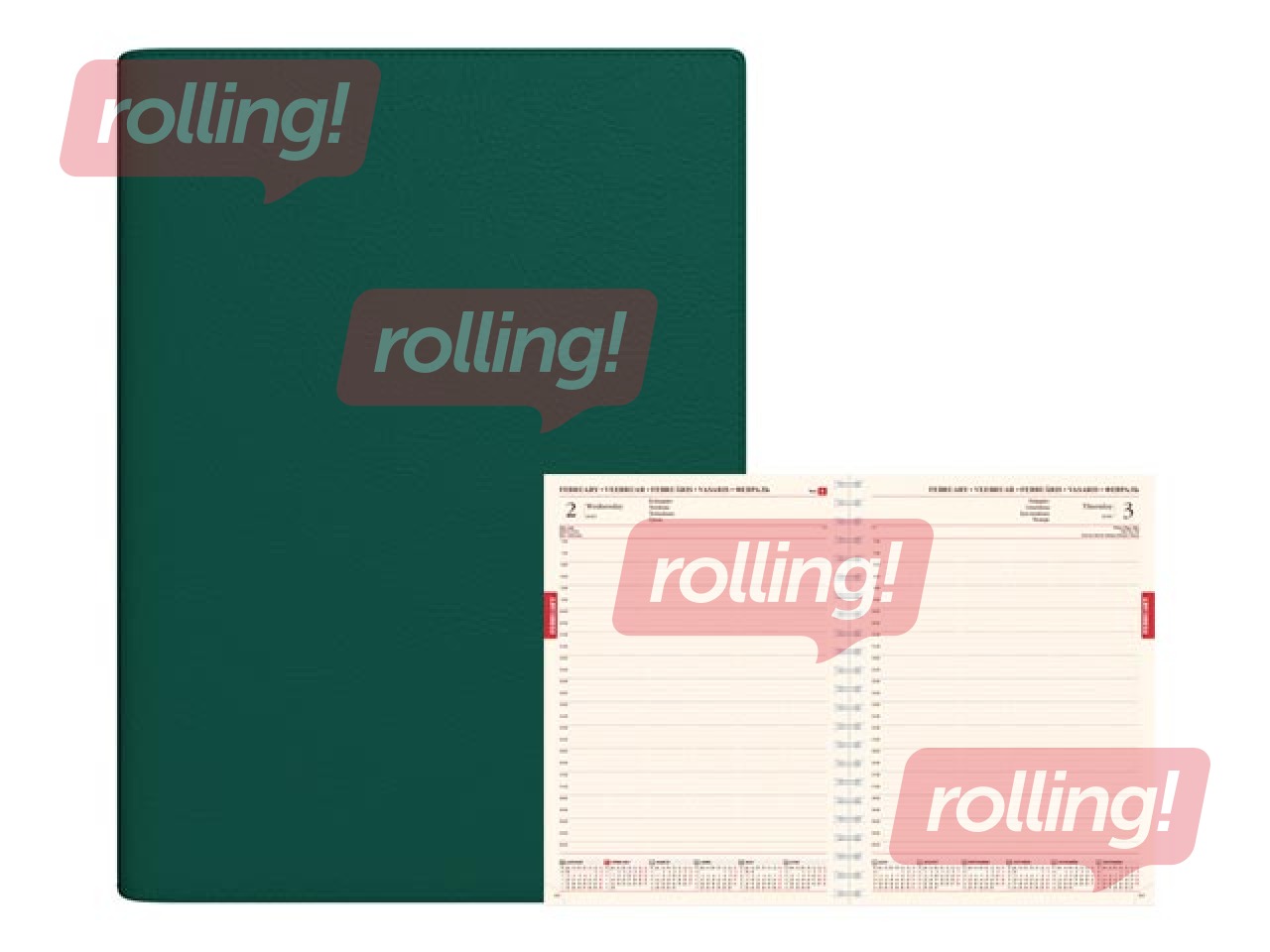 Papildus informācija: Polsterēti mākslīgās ādas vāki ar nošūtu malu, ar spirāli, perforēti noplēšami lapu stūrīši.